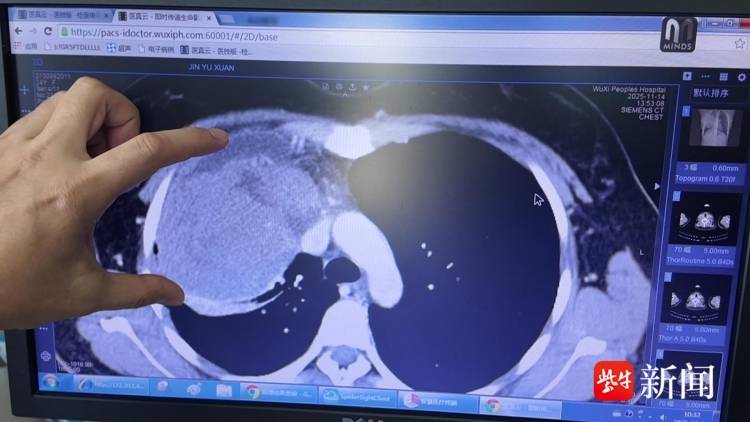 如果不是一次体检,20岁的姑娘吕艾(化名)至今也不会发现自己的胸腔内长了一个小孩头那么大的肿瘤,且肿瘤的位置长得非常刁钻——“趴”在心脏上,“粘”在肺上。如何处理?这一难题交给了南医大附属无锡人民医院胸外科团队。