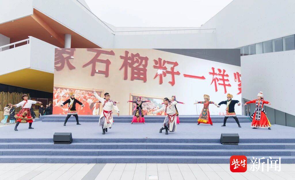 活动在展现无锡“太湖明珠 江南盛地”独特魅力的暖场宣传片中拉开序幕。开场节目《山河图》展现无锡“世界音乐之都”的底蕴,巧妙融入陕西胸鼓的豪迈气势与互助土族舞蹈的欢快节奏,用音乐语言绘就了一幅东西部文明交流互鉴、琴瑟和鸣的动人画卷。歌曲《一脉同声》,将陕北秦腔的高亢辽阔与江南锡剧的温婉清丽相融合,用歌声诠释中华文明多元一体、源远流长的精神内核。舞蹈《石榴花开》将现场气氛推向高潮,舞者们以富有张力的肢体语言,深情演绎各民族像石榴籽一样紧紧抱在一起的团结情谊,描绘出民族团结进步、文明和谐共生的美好景象。