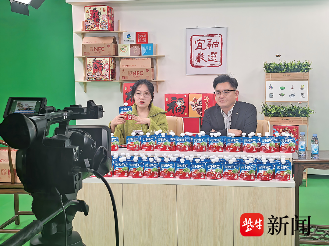 12月25日下午,在宜兴市融媒体中心“宜融严选”直播间内,“延味直供 红色农珍”专场直播火热进行,营养丰富的NFC苹果汁、脆甜爽口的延长苹果、味道醇厚的野酸枣、口感绵密的红薯等一众优质好物,通过镜头一一呈现,借助“云端”直达宜兴消费者手中。