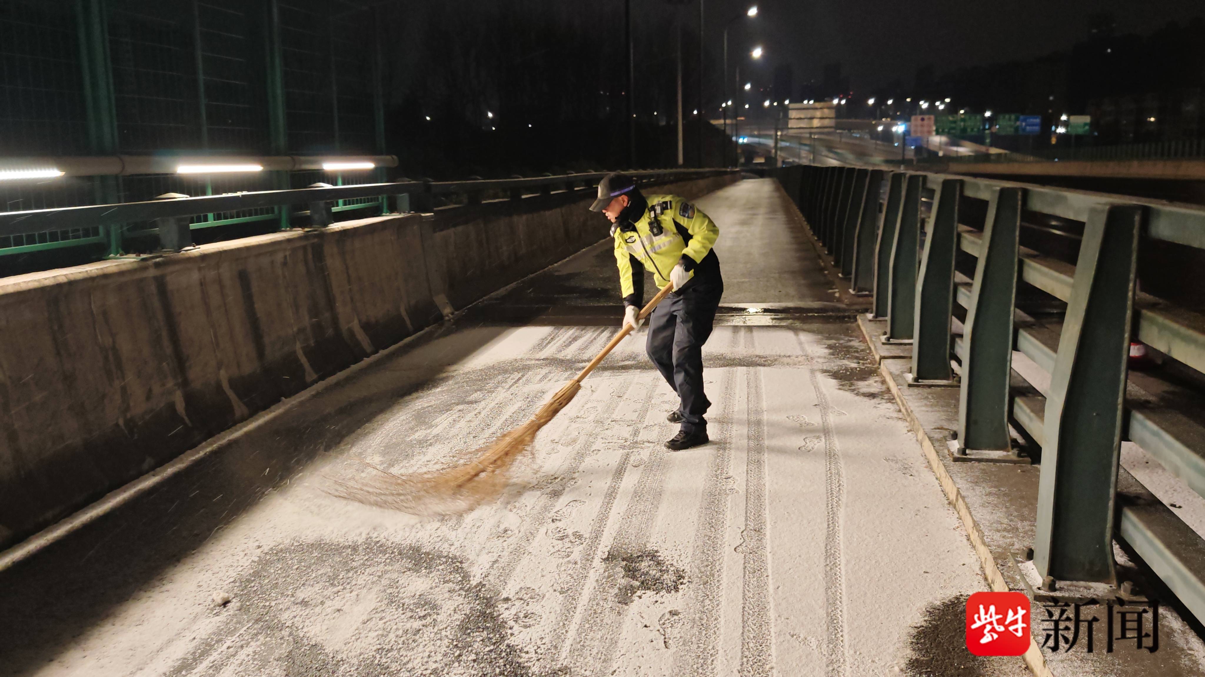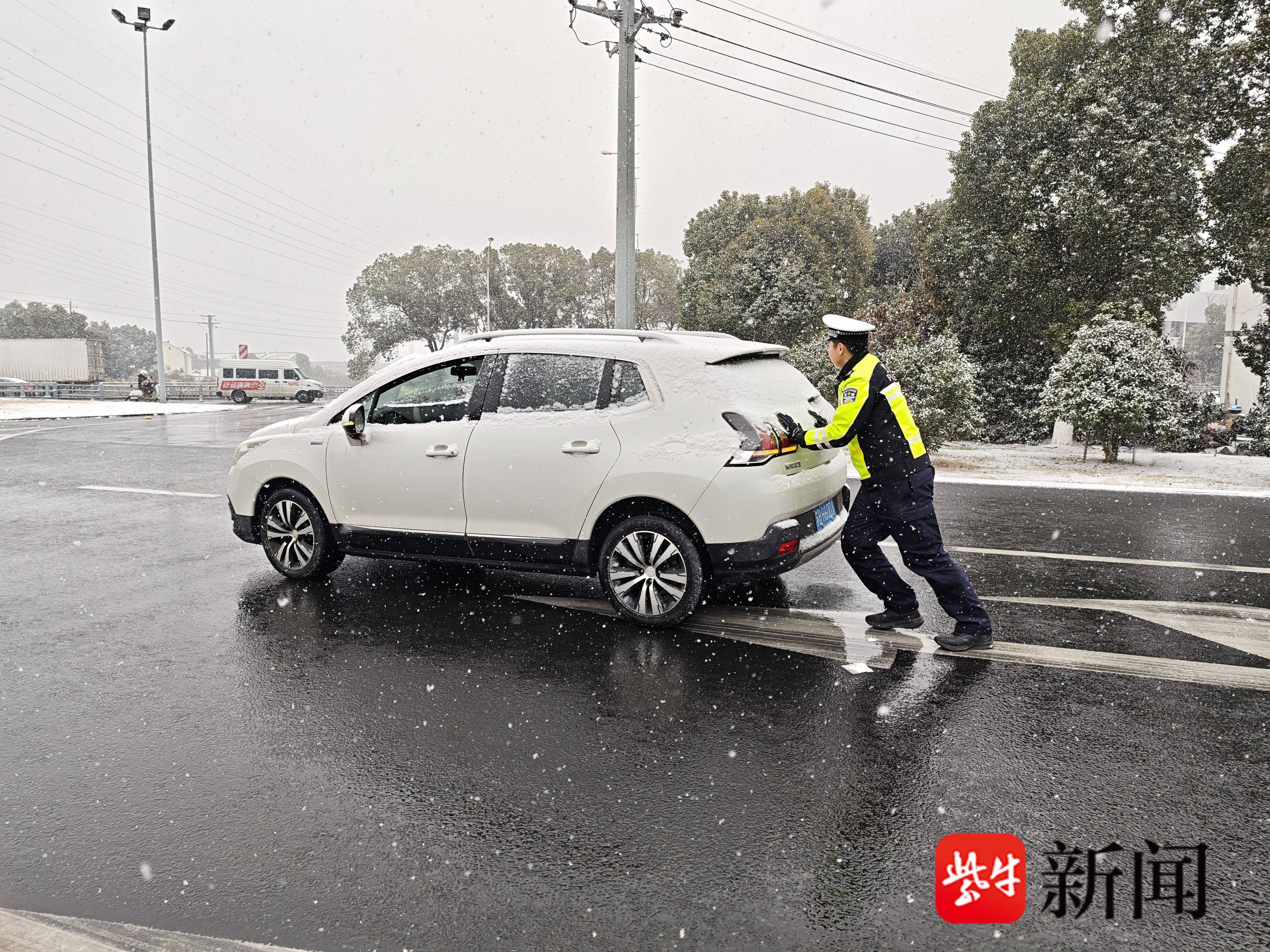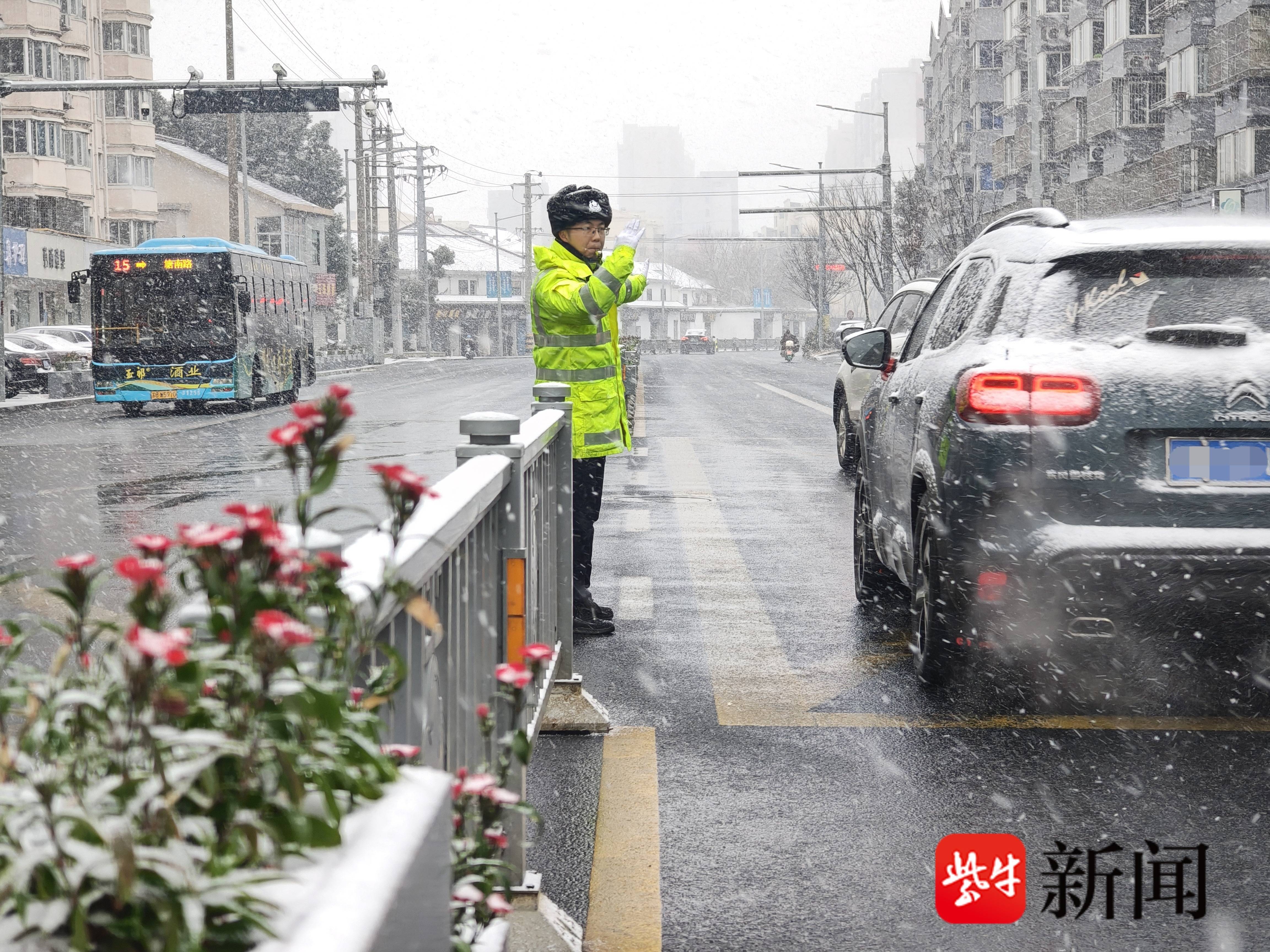 风雪中 无锡交警守护出行路