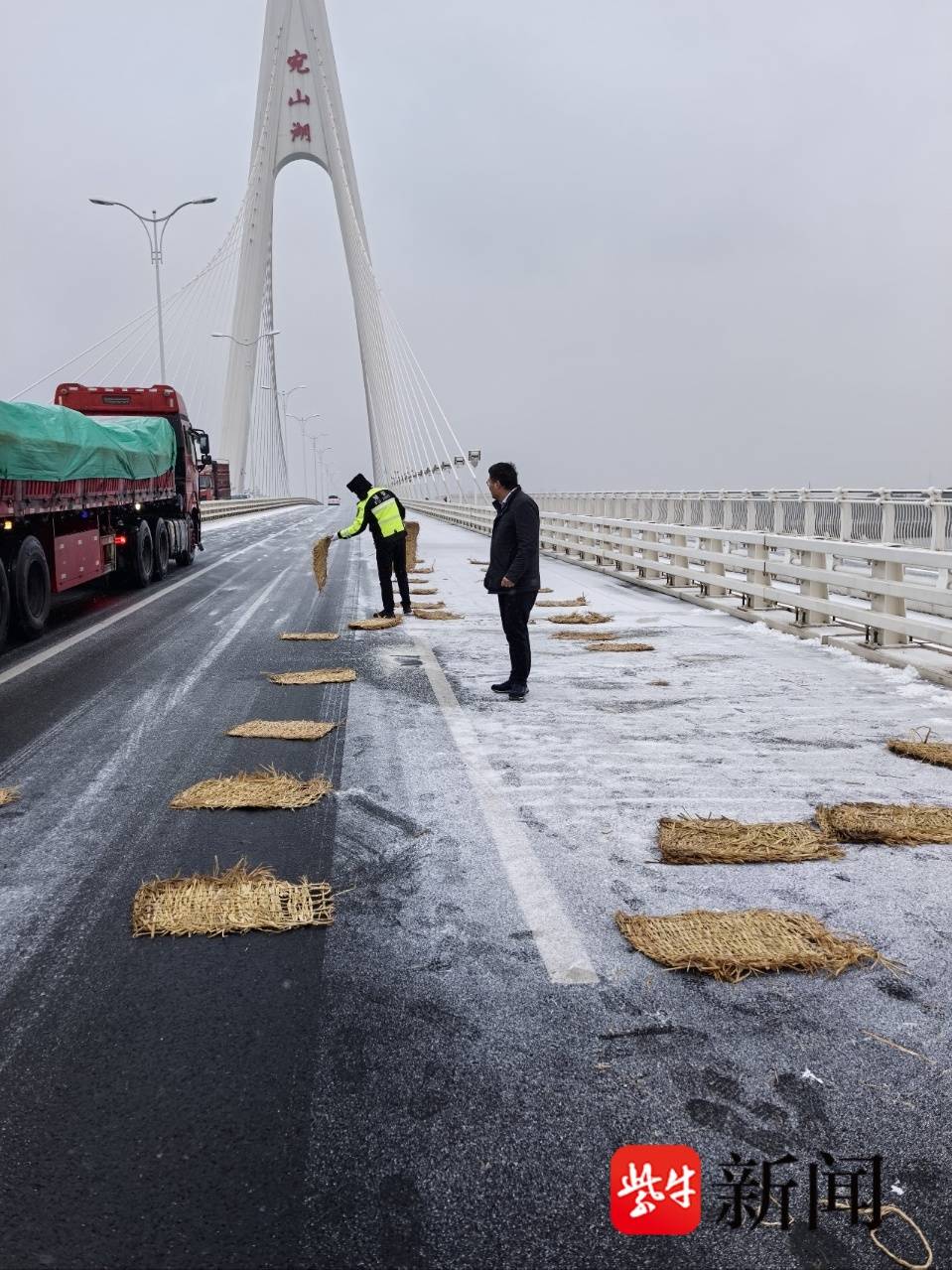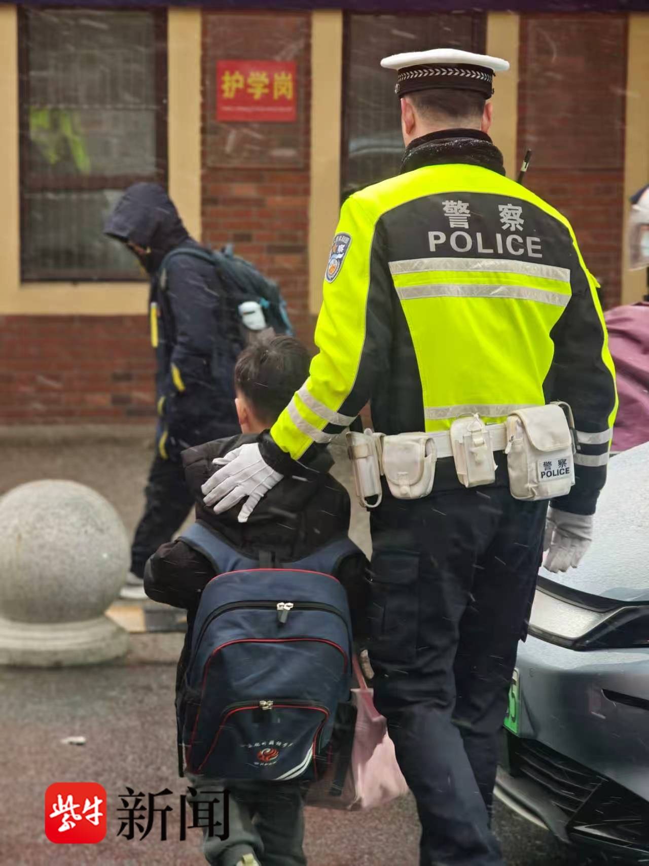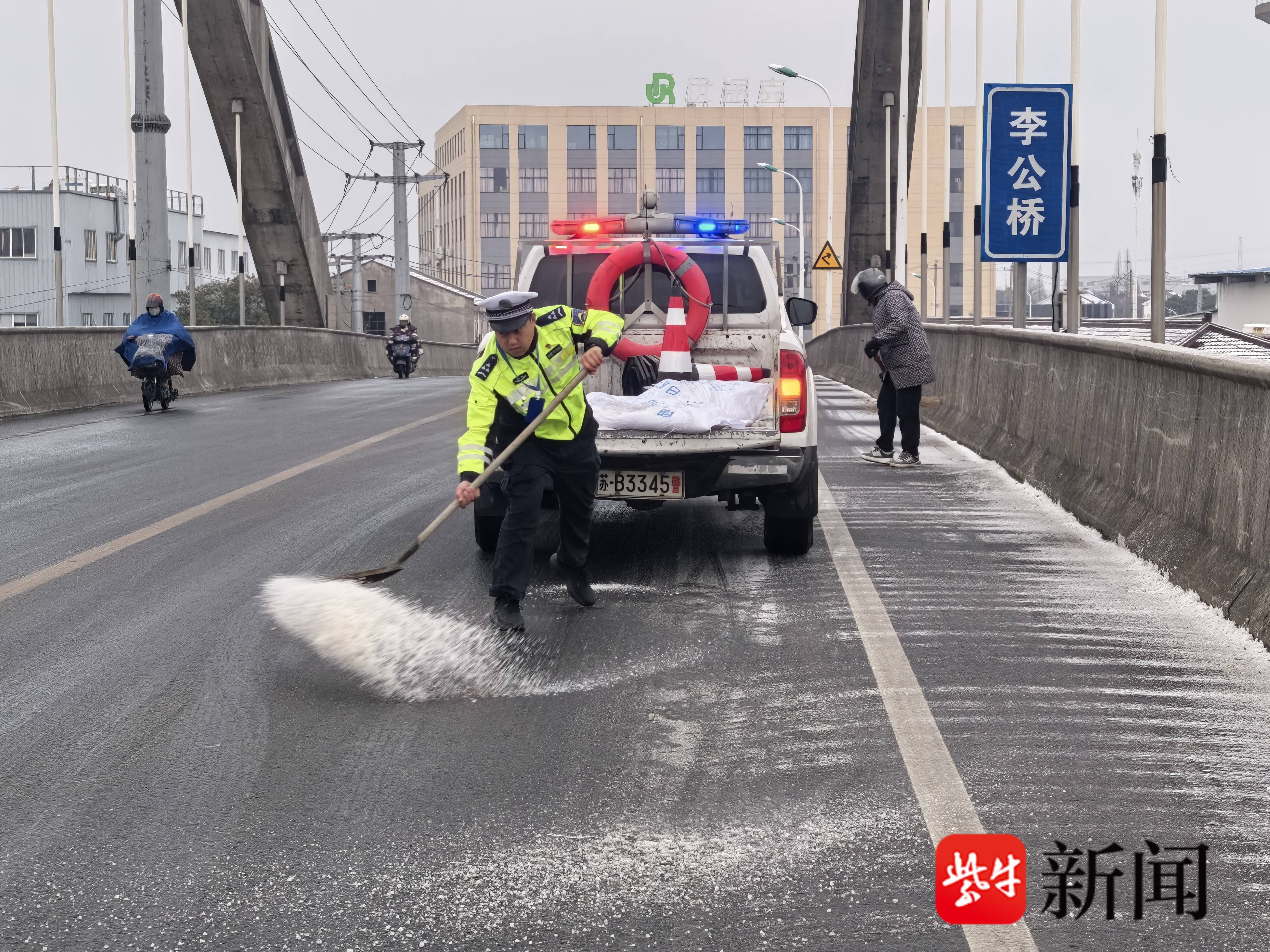 风雪中 无锡交警守护出行路