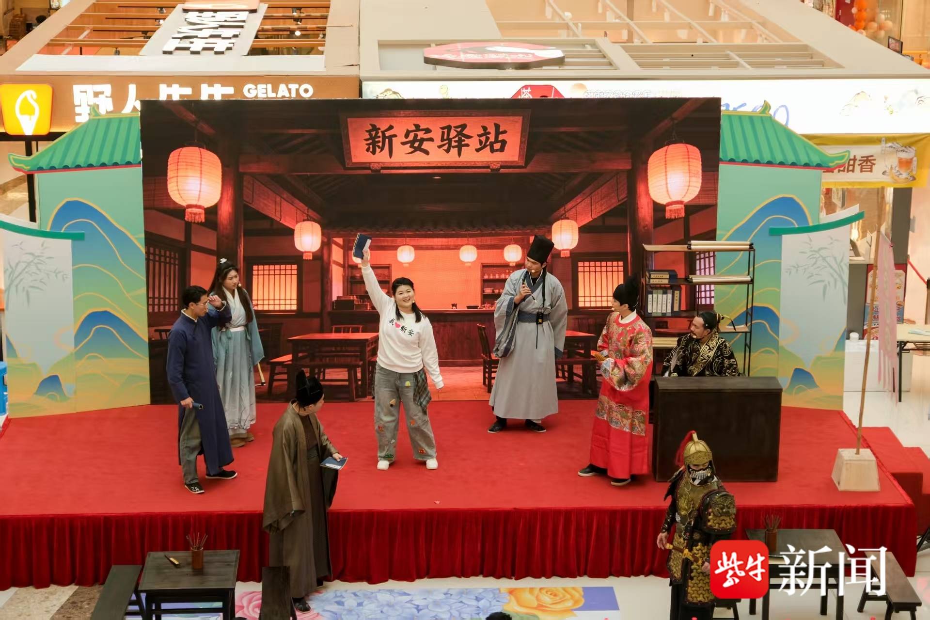 1月23日下午,无锡新吴万达广场中庭区,闲逛的市民身边突然出现一群身穿古装戏服的演员,他们正在进行一场名为《新安驿站:时空之旅》的沉浸式“穿越”剧,并不时与市民互动。剧中出现泰伯、邹忠倚等无锡历史人物线索,唤醒城市记忆。