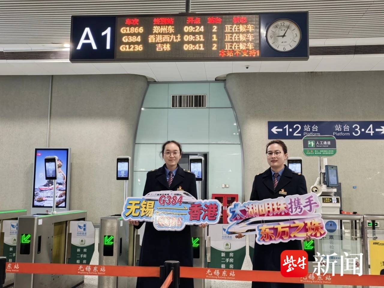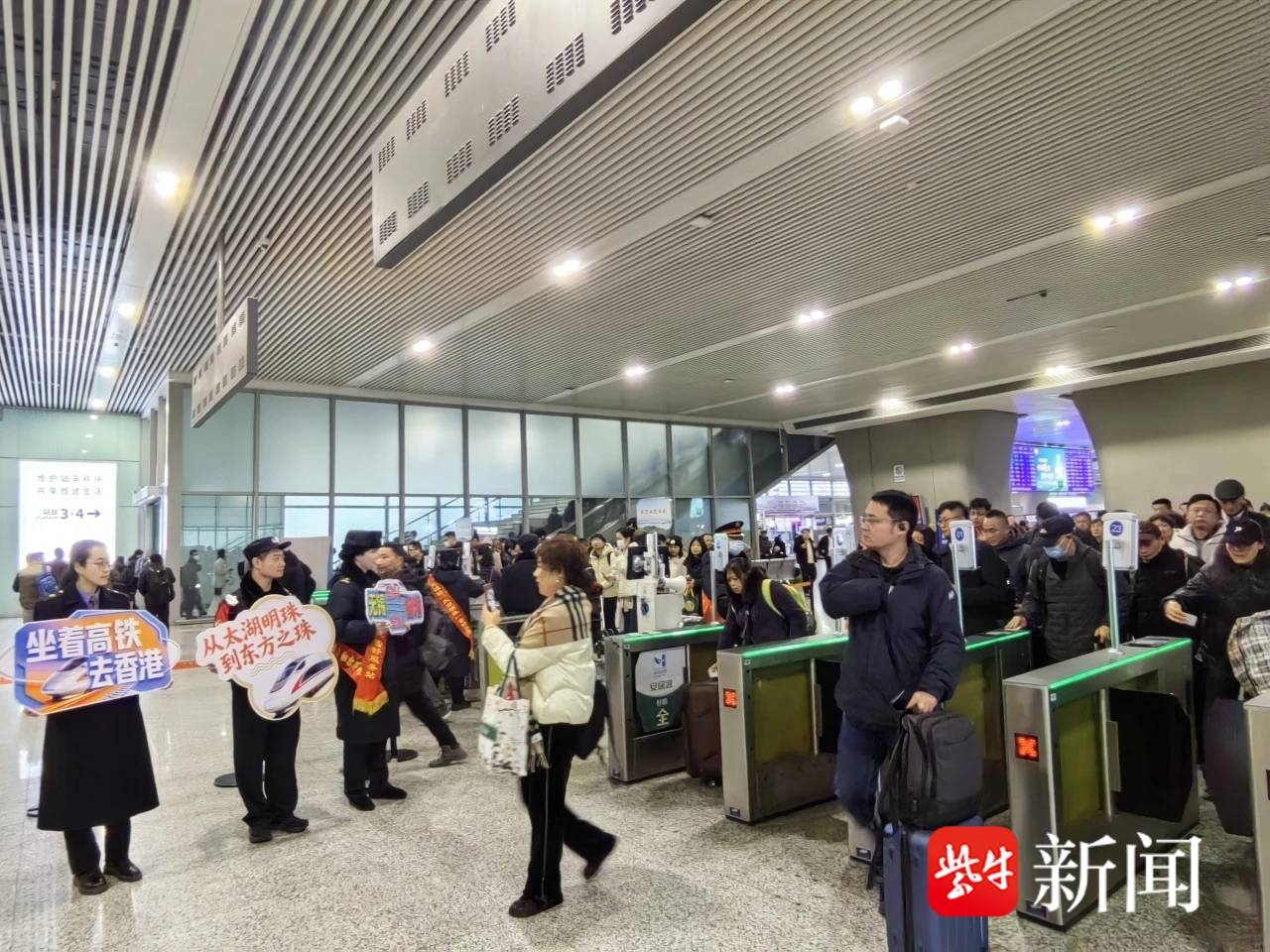 无锡直达香港的高铁发车了。1月27日早上8点半,在G384班次的检票口,已经有众多的旅客开始等候,不少人因为第一次坐高铁直达香港,还牵涉到香港入境等问题,所以觉得早到安心点,同时有问题也可以咨询车站工作人员。
