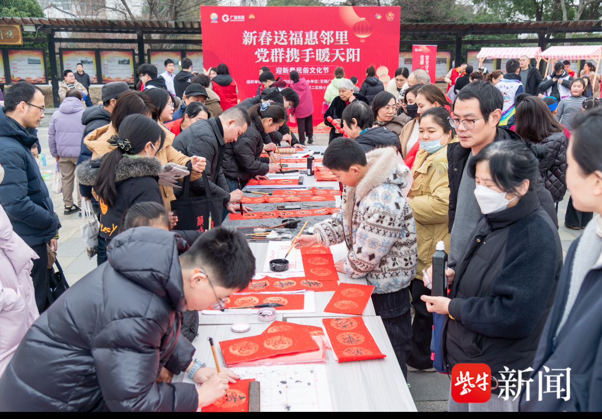 红纸铺展,墨香四溢。志愿者们凝神聚气、挥毫泼墨,“万马奔腾歌盛世,九州欢腾庆新春” “万里春风催马跃,千里瑞气伴春来”……一幅幅寓意吉祥的春联、一张张饱满圆润的“福”字在他们的笔端呈现,传递出浓浓的年味与新春祝福。