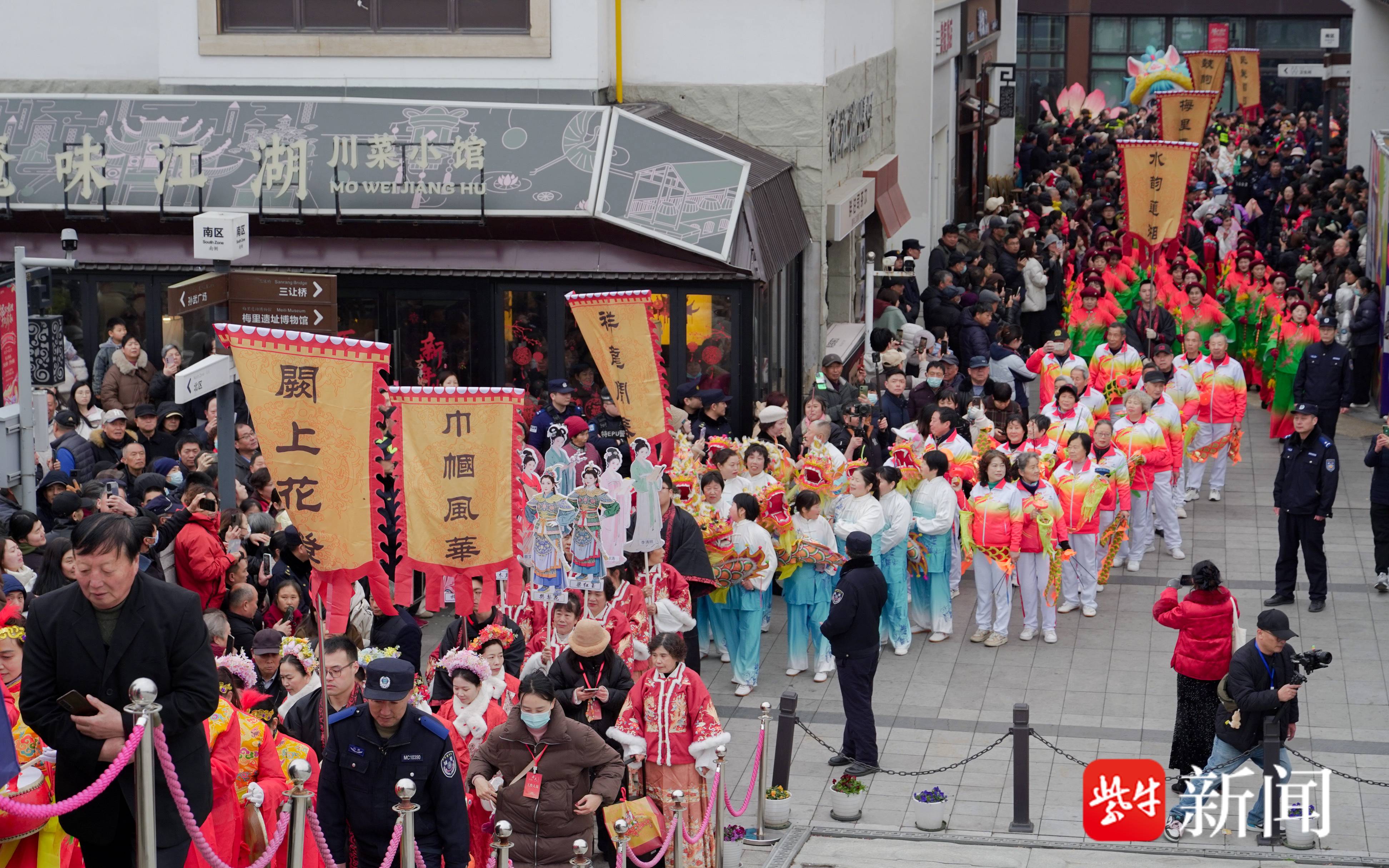 由近600人组成的28支巡游队伍,以“启程—征程—融合—欢庆”为主线,通过戏剧化编排,集中展示舞龙舞狮、岐山转鼓、二胡、锡剧等特色节目。