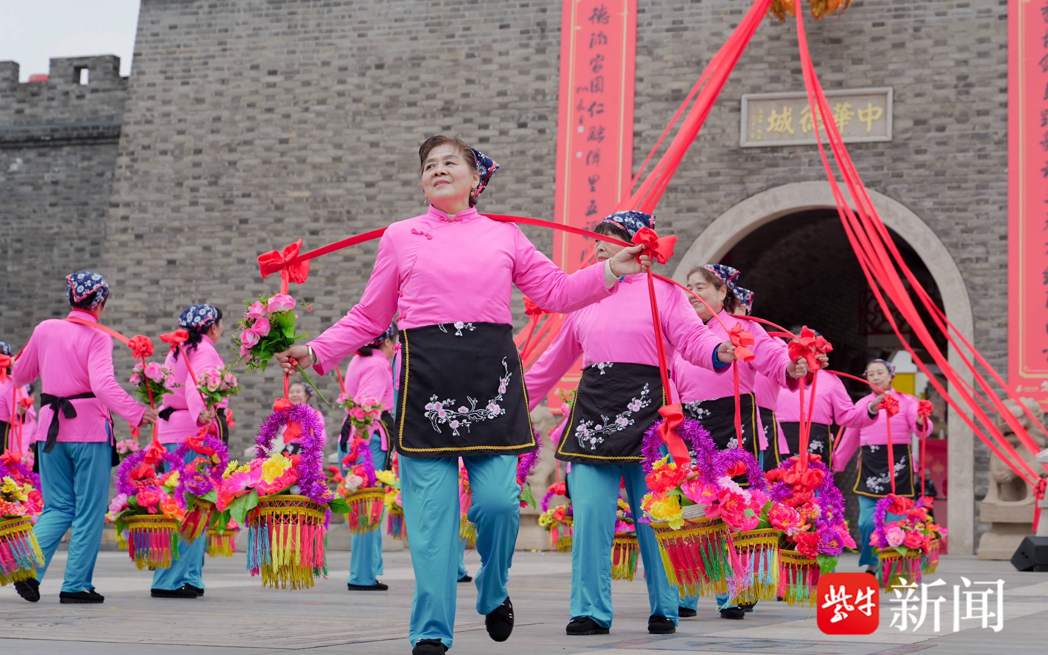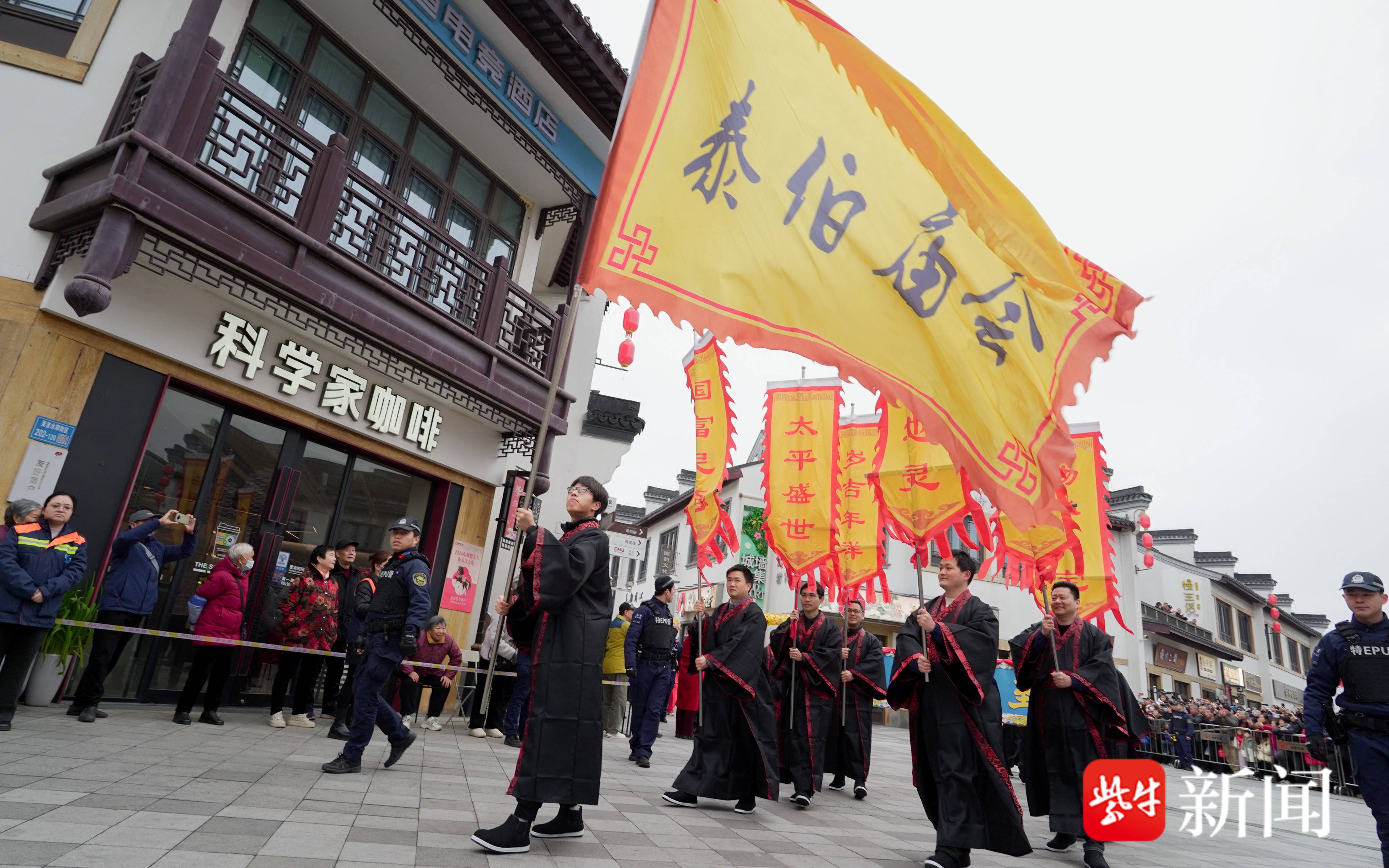 9点50分,伴随着梅里古镇德城广场城楼上悠远的号角声,一年一度的泰伯庙会民俗巡游正式拉开帷幕。