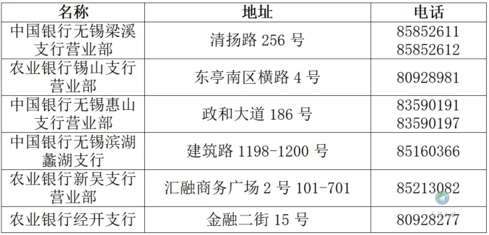 根据规定,无锡市区参保单位申请办理职工退休,可至中国银行、中国农业银行相关社保业务“就近办”服务网点。无锡市社保中心服务大厅(无锡市广瑞路2号无锡市市人力资源市场三楼)不再受理上述退休申请。参保单位可至以下任一银行网点提交退休申请材料。