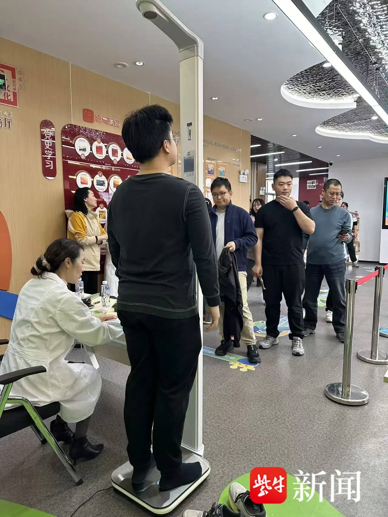 “楼下为报名资料核验区,楼上为体重、腰围测量区,建档区,男女分开。”一大早,山北街道便民服务中心门口陆续有人前来,工作人员正在引导他们有序进入每一个环节。衣物衣架、休息座椅、饮水供应、引导标识……每一处细节,都彰显着以人为本的服务理念。