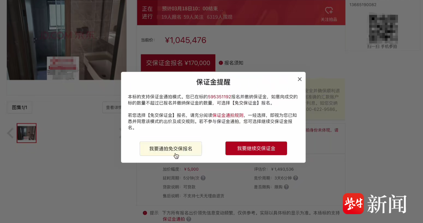 据悉,无锡某小区开发商因资金链断裂无力偿还银行贷款陷入诉讼,法院依法将其数十套精装房进行司法网拍。“以往同一个小区多套房屋逐一拍卖,往往卖不出好价钱。”银行方表示,重复交保证金容易限制竞买人的选择空间和参拍策略,许多有购买意愿的潜在竞买人挡在了门外,“有些‘观望者’会在竞价过程中‘中途离场’,导致价格拍不上甚至流拍”。