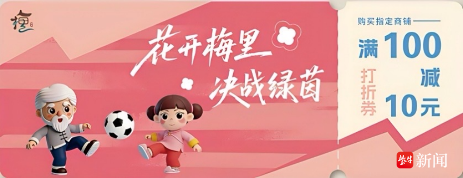 梅村街道在梅里古镇、璟隆广场同步设立第二观赛点,与场内赛事形成联动。梅里古镇吴歌台大屏实况转播,千年吴文化与足球激情碰撞,球迷在古韵街巷间观赛助威之余,还可漫步古镇、品美食、赏夜景,让足球热情点燃夜经济;璟隆广场则开启高清大屏直播,配套街舞大赛、品牌折扣券、全场消费券等活动,为球迷提供“看球、抽奖、逛好店”一站式体验。两大现场球迷穿着定制短袖,同步派发“满100减10”非遗消费券,打造网红属性观赛打卡地,有效激活观赛人流与商业动线,形成“体育+文旅”的沉浸式消费场景。