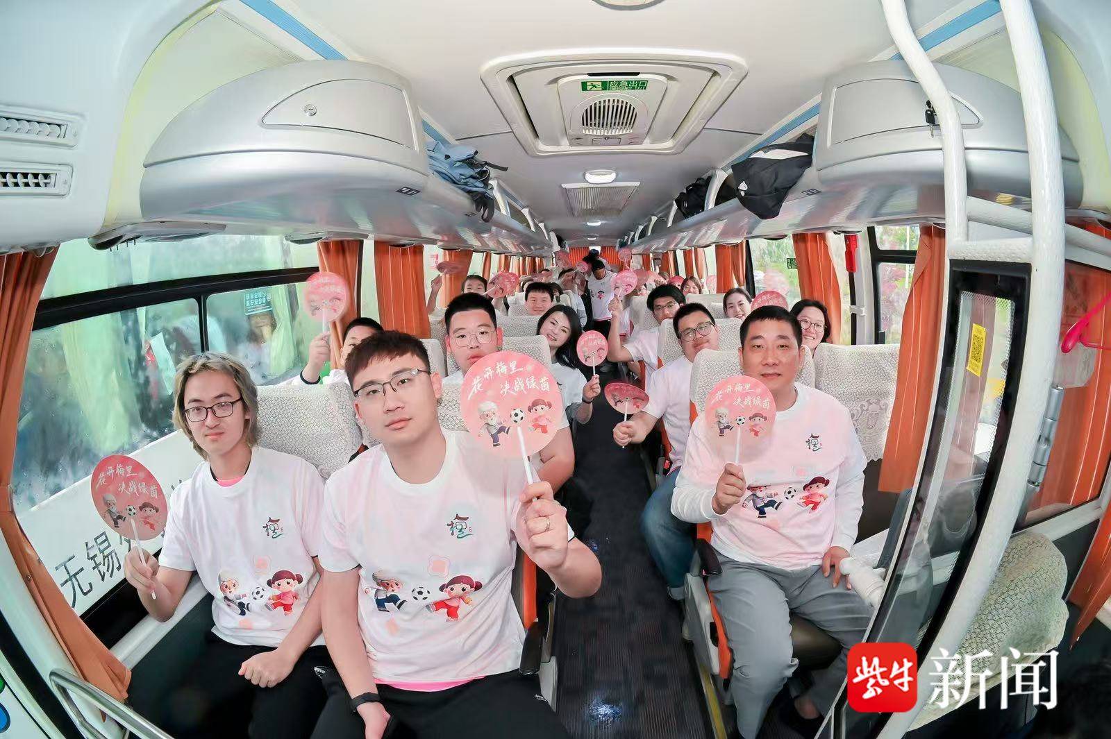 奔赴宜兴途中,梅村球迷方阵的大巴上已是热情高涨。球迷们身着统一“梅村元素”文化衫,齐声高喊“无锡必胜”,用最响亮的口号拉开助威序幕。