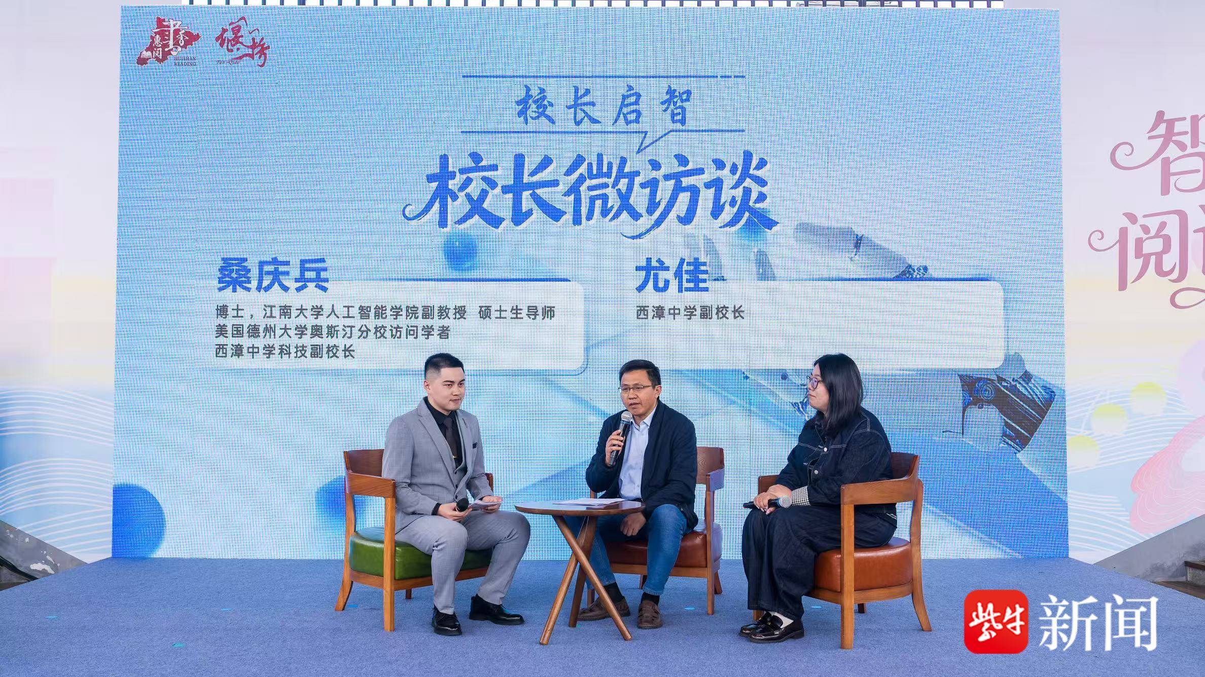 在深度分享环节,无锡西漳中学科技副校长、江南大学人工智能学院桑庆兵副教授与西漳中学副校长尤佳,围绕“科技与阅读如何共同赋能青少年成长”展开对话。“阅读是科学探索的钥匙。”桑庆兵教授不仅分享了高校推动阅读与实践融合的特色经验,更贴心为热爱科学的青少年推荐了一份涵盖物理、人工智能、编程等领域的“入门级”优质书单。