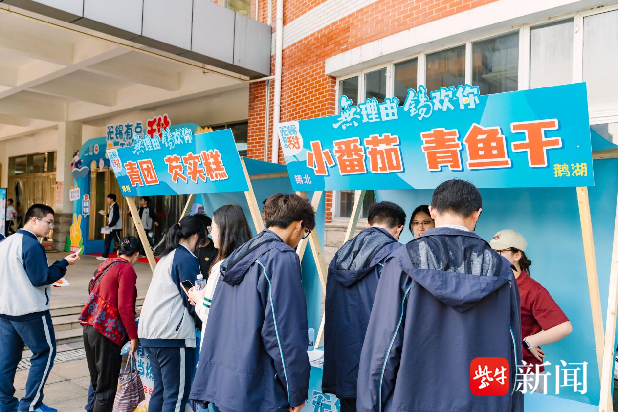 除了美味餐食,人气爆棚的“无锡有点甜”互动市集成为校园里的热门打卡点。市集设置甜蜜套圈圈、人才文创抽奖、特色美食免费领取等环节,厚桥青团和芡实糕、锡北小番茄、鹅湖青鱼干、云林茶食手饼、羊尖海棠糕等锡山各镇街特色美食此次也倾情加盟,为学子们送上满满祝福。高颜值、有心意的人才文创礼品引得同学们踊跃参与。大家通过趣味互动收集惊喜、兑换礼品,现场欢声笑语不断,青春氛围热烈浓厚。