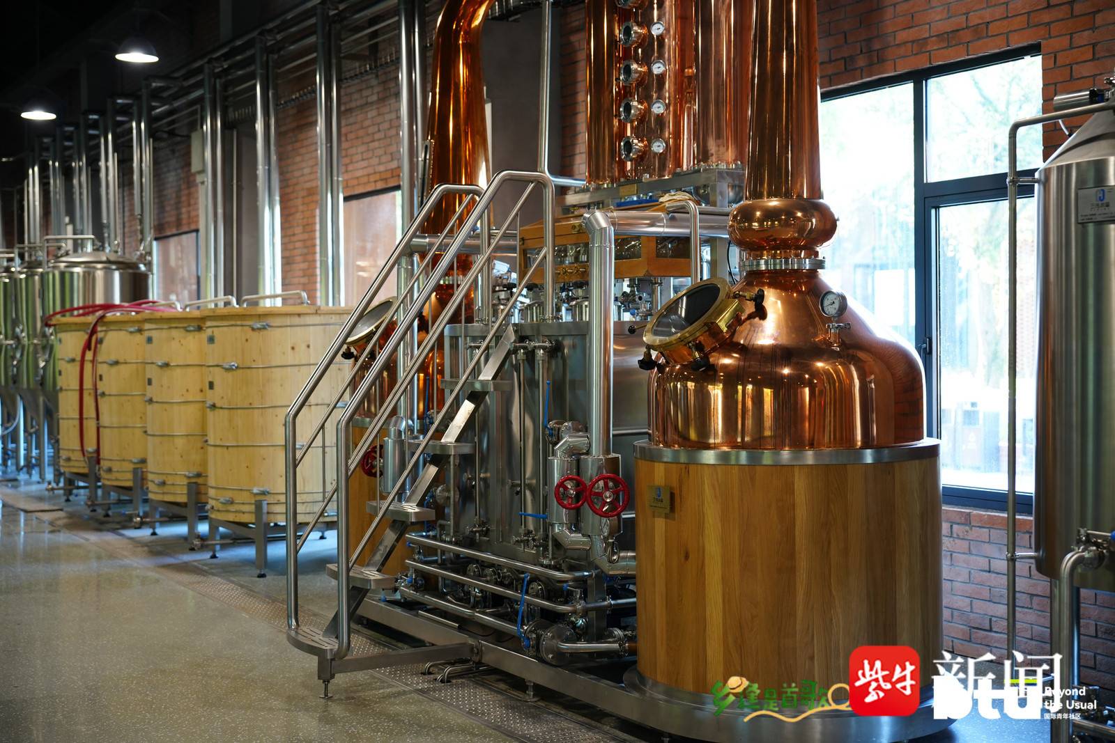 社区内部,多元场景更是让人眼前一亮。推窗见竹海的青年公寓整齐排布,设施完善的单人间满足数字游民拎包入住需求;艺术展陈中心、花园餐厅、户外网球场等配套一应俱全,原本冰冷的旧厂房,被改造成集居住、办公、社交、文创、休闲于一体的共居共创空间。而社区里的烈酒测试车间、桶陈中心,让现代化蒸馏设备与复古工业风装修相得益彰,酒香与茶香交织,让乡土产业与青年生活深度相融,也让这片老建筑彻底焕发新生。