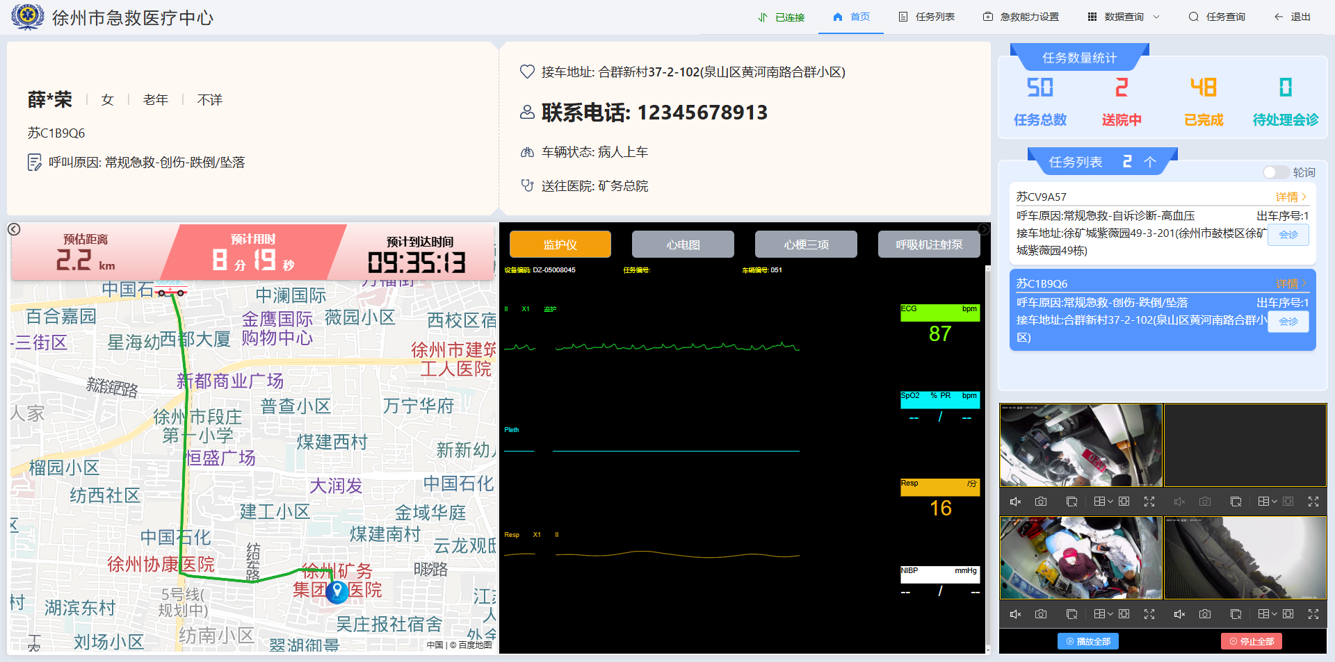 “上车即入院”模式无疑在急危重症抢救中发挥着高效协同与关键作用。不仅如此,近年来,徐州市120秉持“人民至上、生命至上”的理念,坚持“以患者为中心”,分别结合院前、院中、院后,对呼救、响应、调度、急救、进院等环节进行全流程的设计,先后安装了“手机呼叫即定位、聋哑人无障碍呼救平台、视频呼救(0516-120)、大数据生命支持系统CALLS、智慧化派车、5G智慧上车即入院”等程序和软件,基本实现“呼叫即定位、呼救即抢救、上车即入院、下车可溯源”。