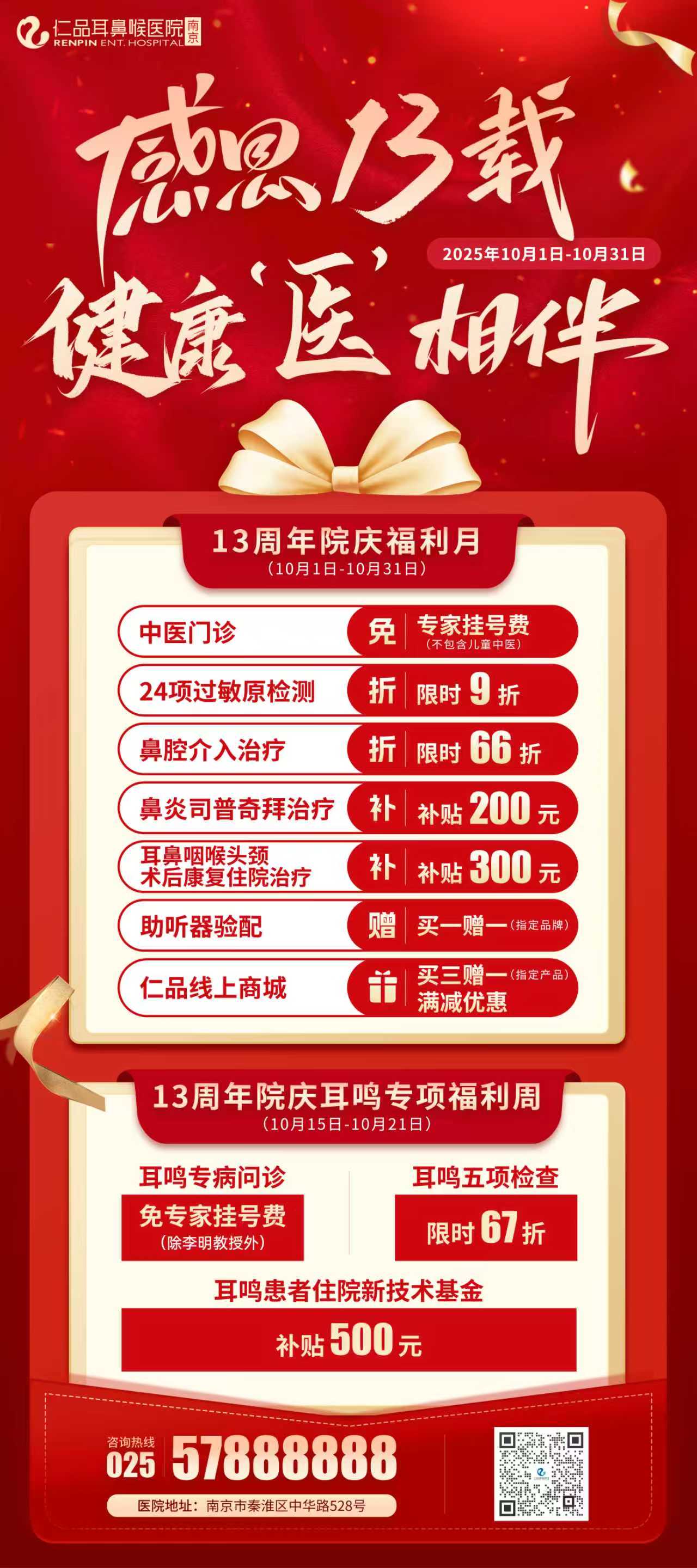 十三载仁心惠民!南京仁品院庆福利月反响热烈,耳鸣专项福利周重磅加码