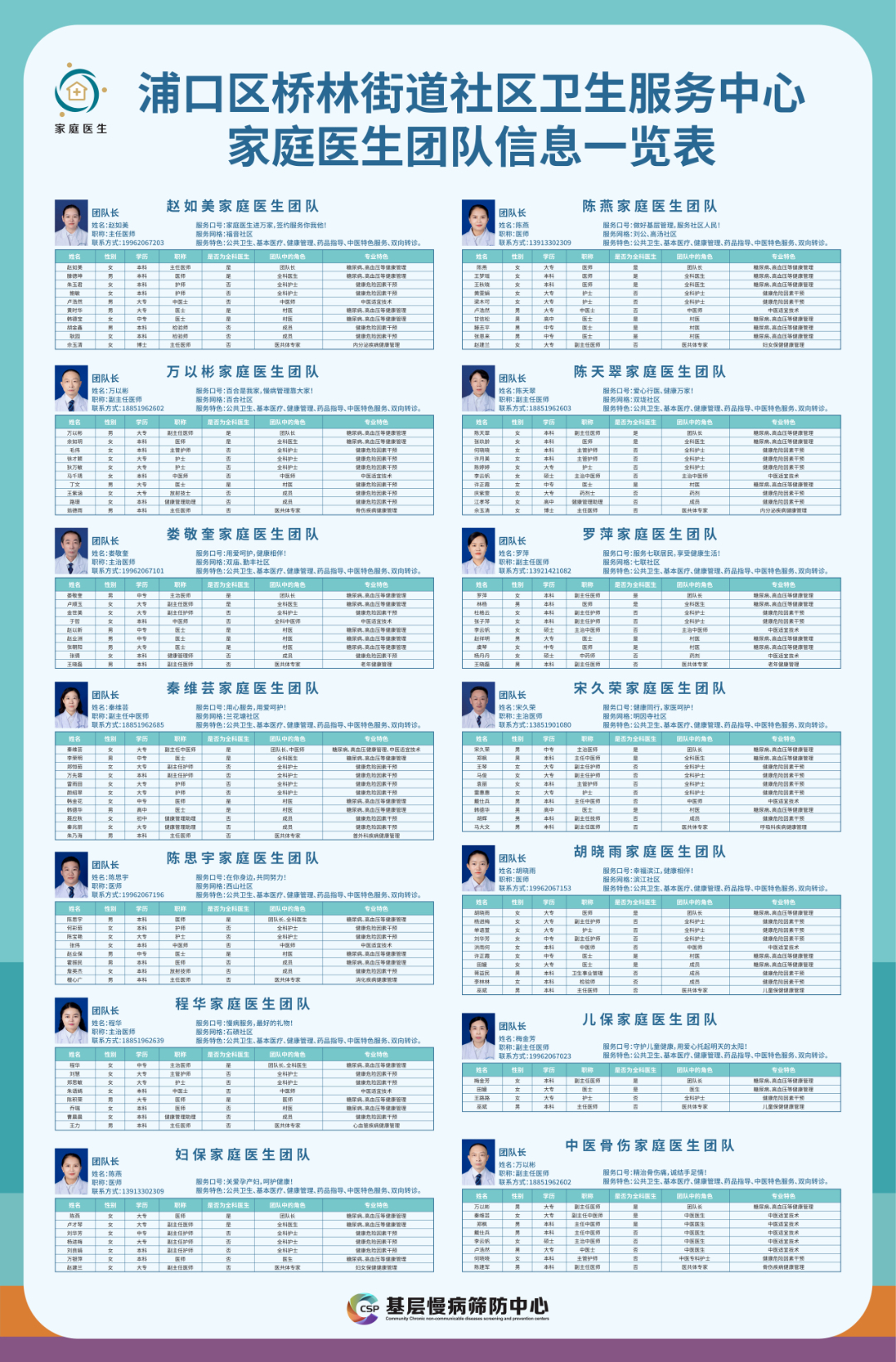 浦口区桥林街道社区卫生服务中心家庭医生团队信息一览表