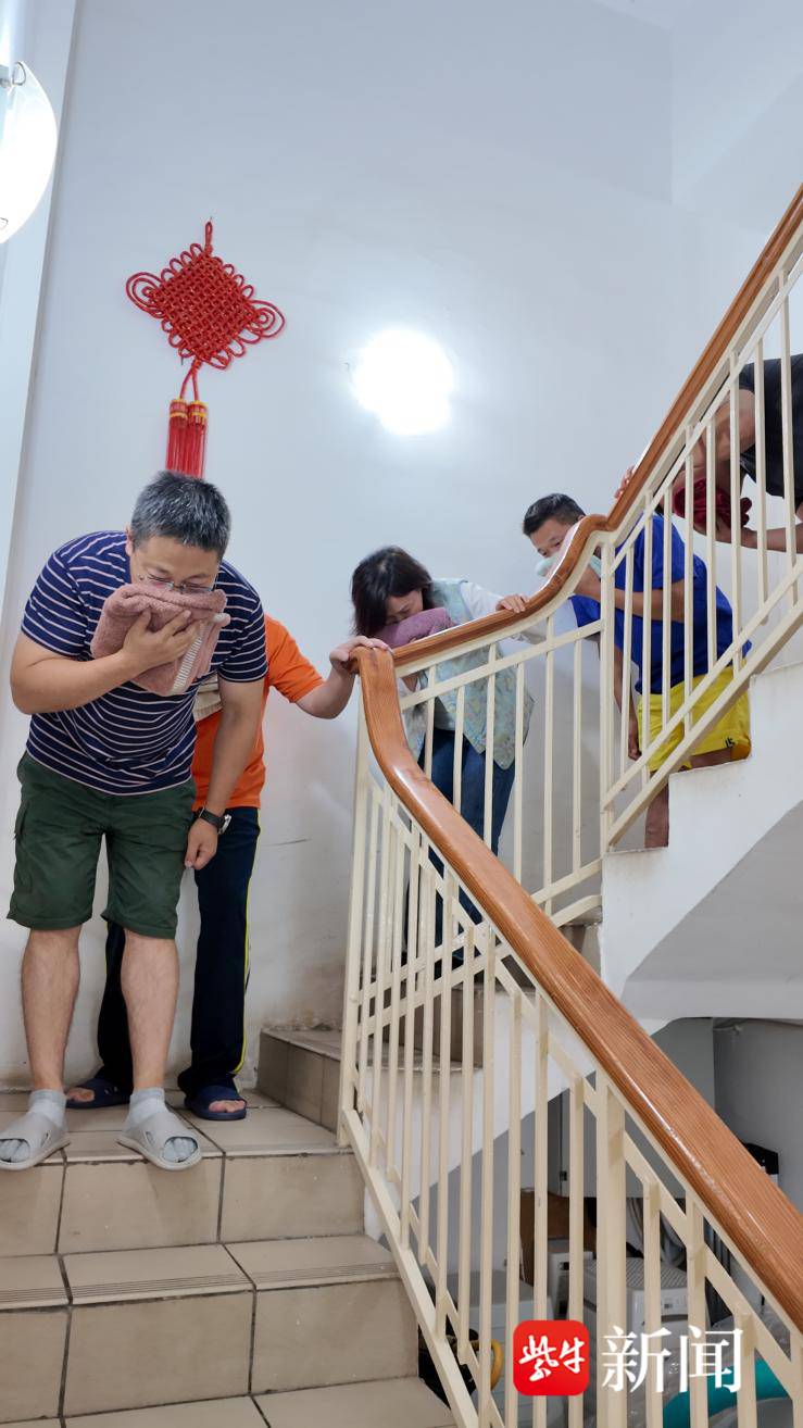 随后开展的房屋逃生模拟环节中,现场烟雾缭绕,队员们迅速用湿毛巾紧捂口鼻,弯腰低姿快速撤离至庭院安全区域,整个过程紧张有序、配合默契。