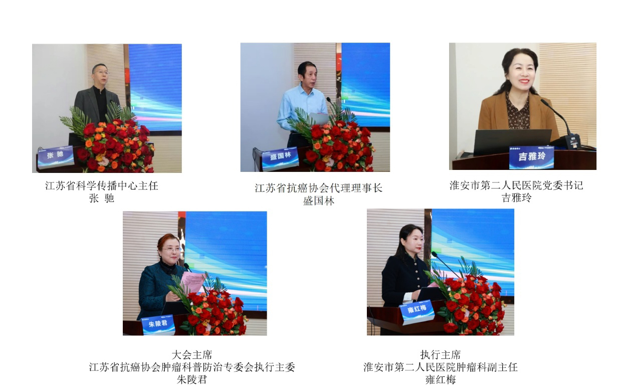 江苏省科学传播中心主任张驰在致辞中指出,肿瘤防治要构建坚实的全民科普防线,让科学防癌知识深入大众。江苏省抗癌协会代理理事长盛国林强调,要持续推进肿瘤防治科普工作,凝聚专业力量服务“健康江苏”建设。淮安市第二人民医院党委书记吉雅玲表示,作为承办单位,将充分发挥省级临床重点专科优势,推动肿瘤诊疗规范化发展,为全程管理提供坚实支撑。