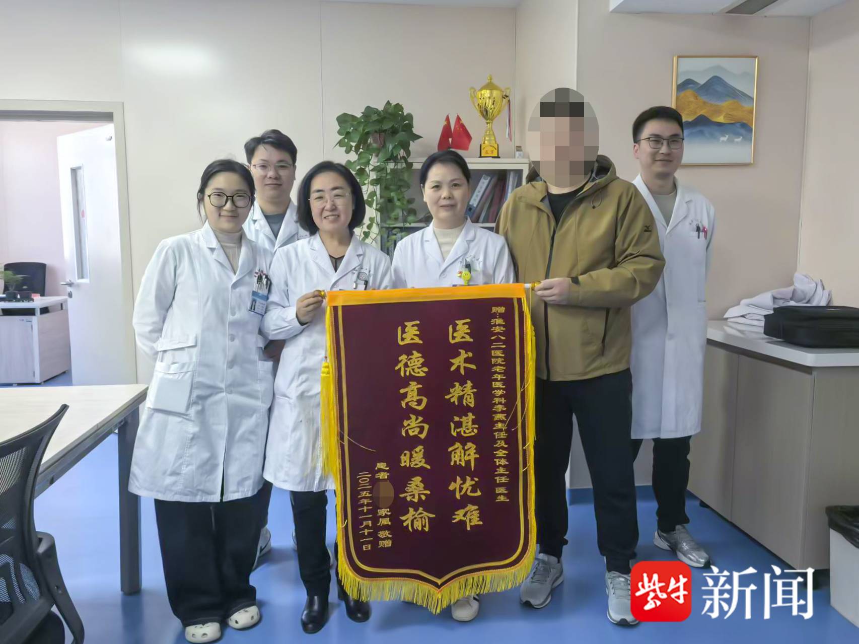 近日,淮安八十二医院老年医学科上演了温馨而感人的一幕。患者家属张先生将两面锦旗,送到了科室医护人员手中,以此感谢医生护理团队在其奶奶生命最后阶段所提供的专业、温暖的安宁疗护。这面锦旗,不仅是一份诚挚的谢意,更是对我院践行人文关怀、提升生命终末质量服务理念的深度肯定。