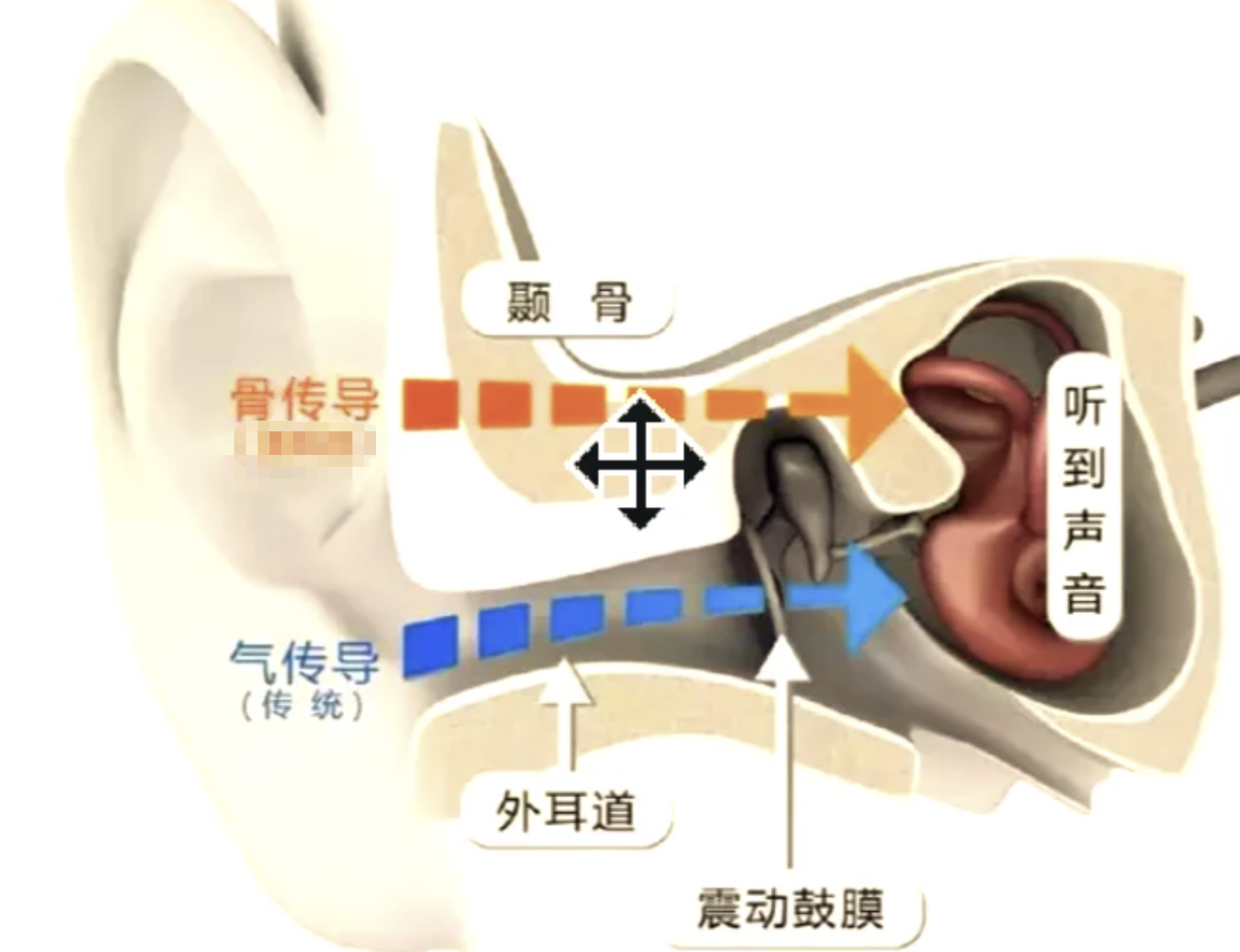 正常耳机靠空气传声,耳廓收集声波,从外耳道引起鼓膜振动,通过听骨链(锤骨、砧骨、镫骨)传导放大,镫骨底板的活动通过前庭窗引起内耳耳蜗淋巴液振动,毛细胞感知并转化为神经信号,再通过听觉神经传导至大脑听觉中枢,最终形成听觉。而骨传导耳机是“骨骼传声”。南京市中西医结合医院耳鼻喉科副主任医师朱晓燕介绍,骨传导耳机的振动单元贴紧颞骨,跳过鼓膜,直接通过颅骨(颞骨)振动传递声波到内耳耳蜗毛细胞,从而让人感知声音的设备。所以哪怕鼓膜受损,也能正常听声。