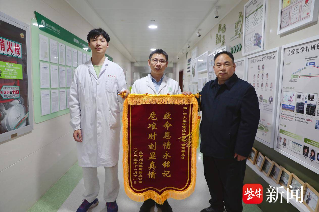11月17日下午,东南大学附属中大医院重症医学科医生办公室内发生暖心一幕:北京闻达敏斯物业公司的柏经理向该院重症医学科副主任谢剑锋主任医师送上一面写着“救命恩情永铭记,危难时刻显真情”的锦旗,以此感谢正巧路过的谢剑锋主任第一时间出手,成功挽救了该公司执勤的突发心脏骤停保安师傅的生命。