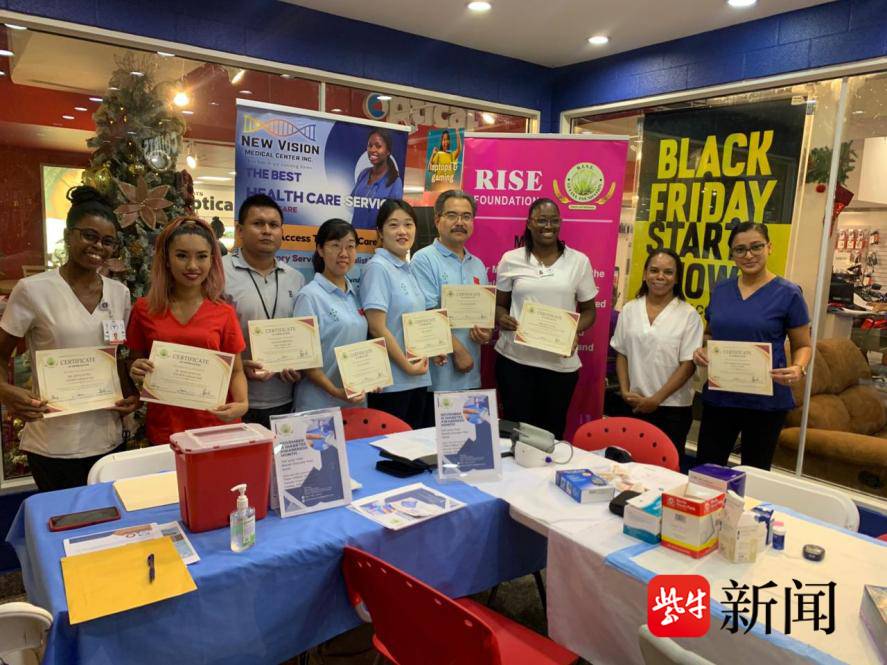 当地时间11月15日,在"世界糖尿病日"及糖尿病关注月期间,第21批援圭亚那中国医疗队应圭亚那RISE基金会邀请,在乔治敦市Giftland商业中心进行公益健康义诊活动。本次活动旨在帮助提升当地居民的健康意识,传递“早预防、早发现、早治疗”的理念。