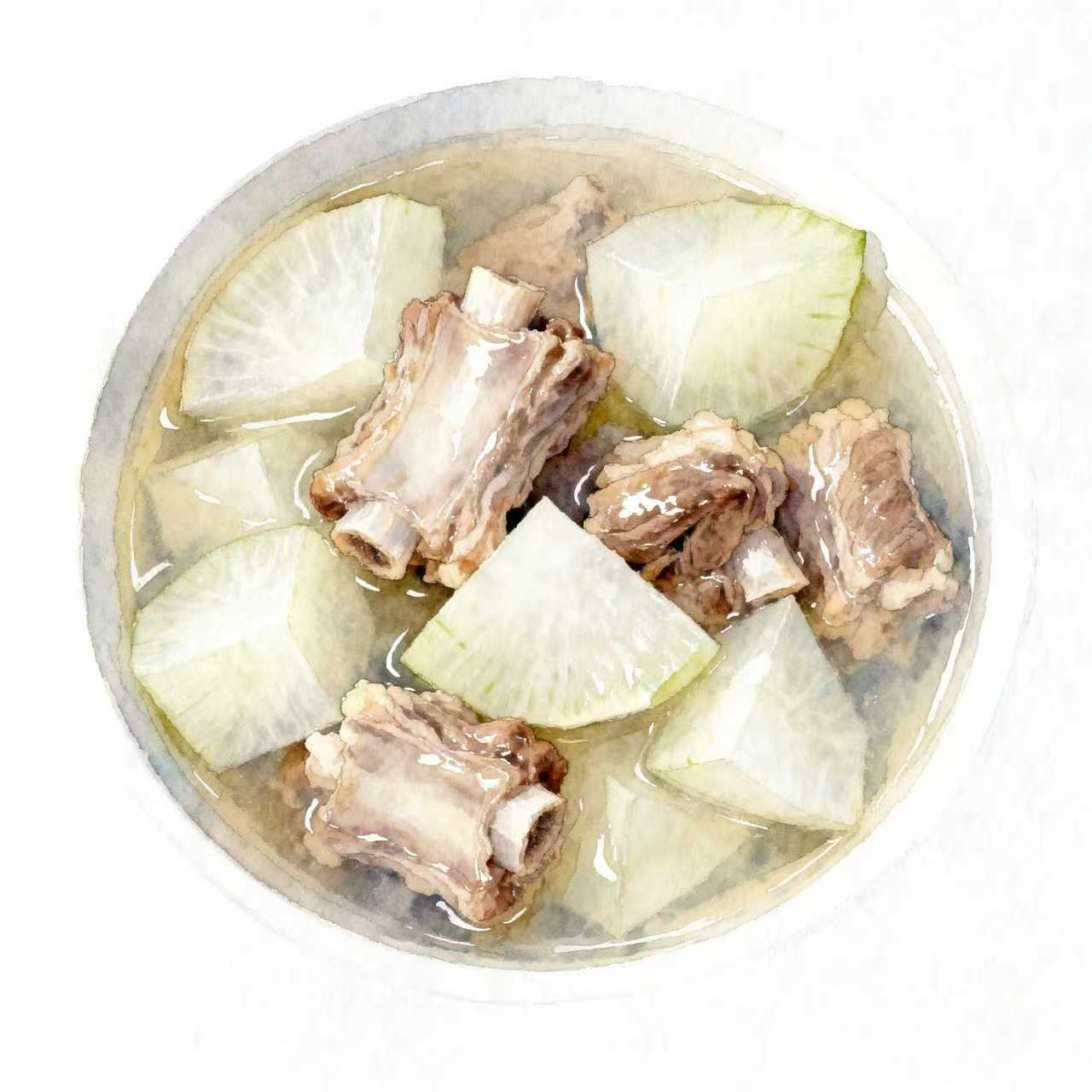 功效:增强免疫力、促进消化、清热化痰。白萝卜炖排骨是一道适合全家老少的滋补汤品,尤其在冬季,可以温暖身体,增强抵抗力。