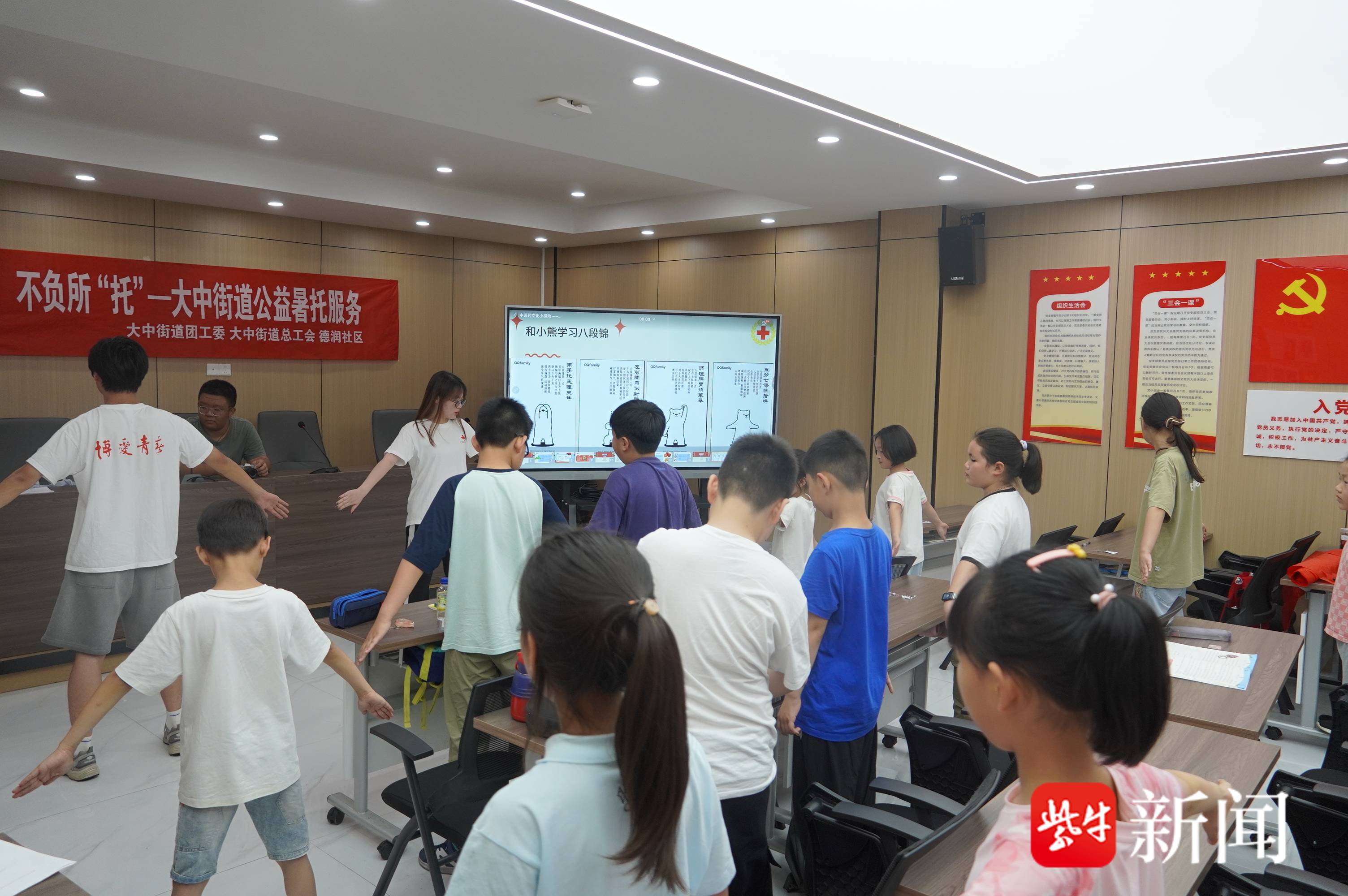 如何才能真正守护童心,助力孩子们的健康成长?汪千懿回忆,项目成员们在暑托班和残联等地,让130多名儿童在“结核飞行棋”“小熊八段锦”等趣味游戏的玩耍中学习健康知识,把菊花、陈皮当拼图,把结核知识玩成“飞行棋”,在他们心中种下中医药与红十字文化的种子。又该怎样提升老年人与残障群体得幸福感?项目成员们深入社会福利院、残联和农村贫困家庭,提供中医特色医疗志愿服务、练习“八段锦”、制作“艾草锤”,和留守老人一块聊天包饺子等陪伴交流。他们还担任“青春宣讲员”,联合大丰区红会为200余名中小学生进行心肺复苏培训;在湿地公园开展环保行动,守护绿水青山;在新四军纪念馆追寻战火中的人道主义精神……