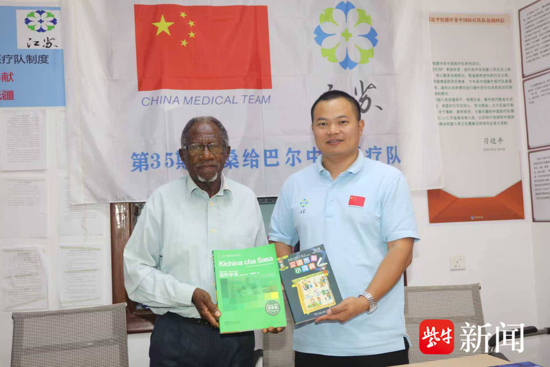 当地时间12月6日上午10点,纳兹莫加医院前院长哈吉·姆维塔·哈吉莅临援桑医疗队驻地,亲切看望第35批援桑给巴尔中国医疗队全体队员,并亲自教授斯瓦西里语。