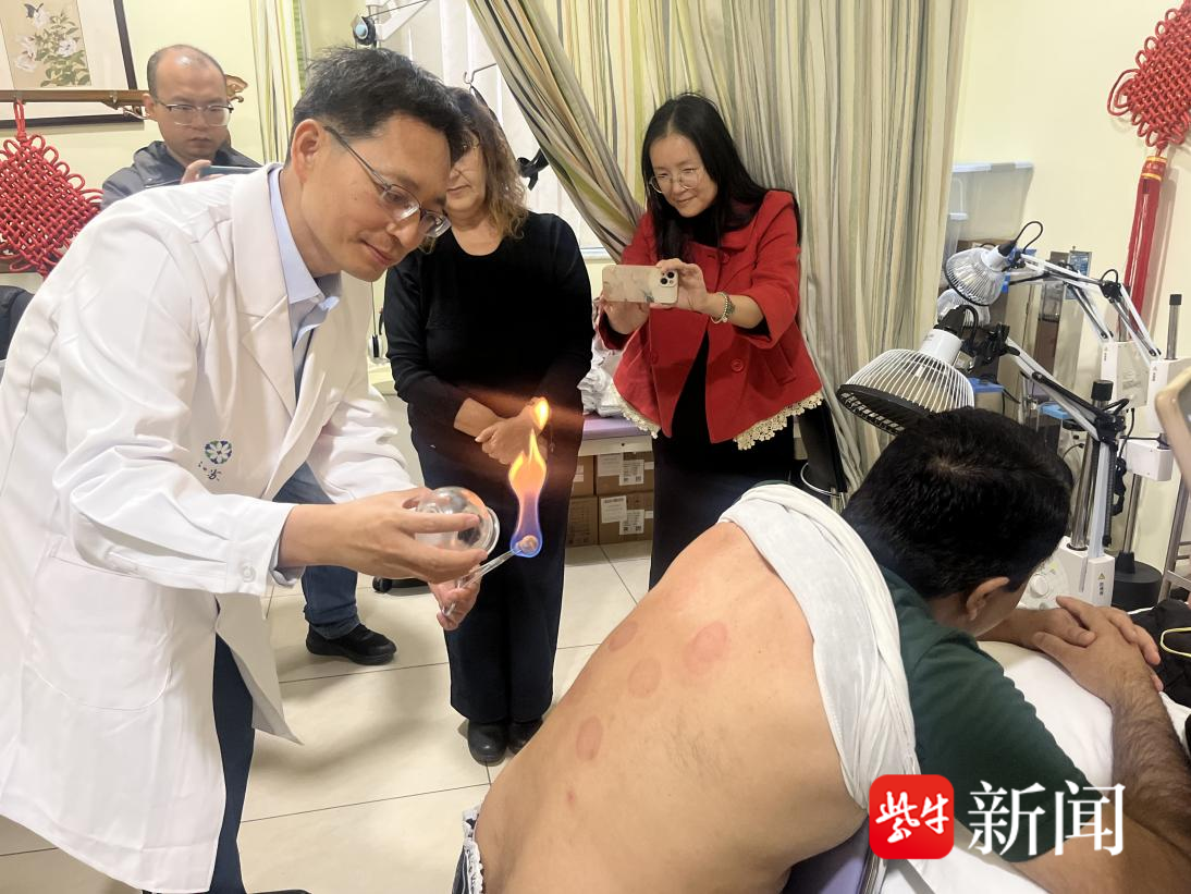 在随后进行的操作示范中,张秀胜向学生展示了部分中医适宜技术的规范操作流程。学生近距离观察了拔罐、推拿、针灸、耳穴压豆等治疗手法,进一步加深对中医技术要点、治疗机制以及安全规范的理解,学生纷纷表示受益匪浅。