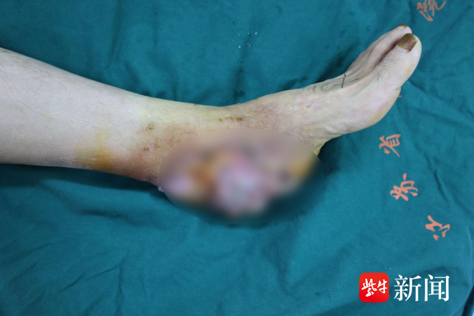六十多岁的王叔叔(化姓)在江苏省中医院整形外科副主任、副主任医师褚庭纲的门诊,向他讲述了一段长达20年的困扰。20年前,他的左脚底不慎扎入铁钉,虽经处理,创口却一直红肿、溃烂,反复发作。其间他曾辗转多地求医,甚至被告知可能需要截肢。虽一度表面愈合,但病灶深处始终未愈,并在近五年迅速恶化,形成巨大肿物,严重影响行走。