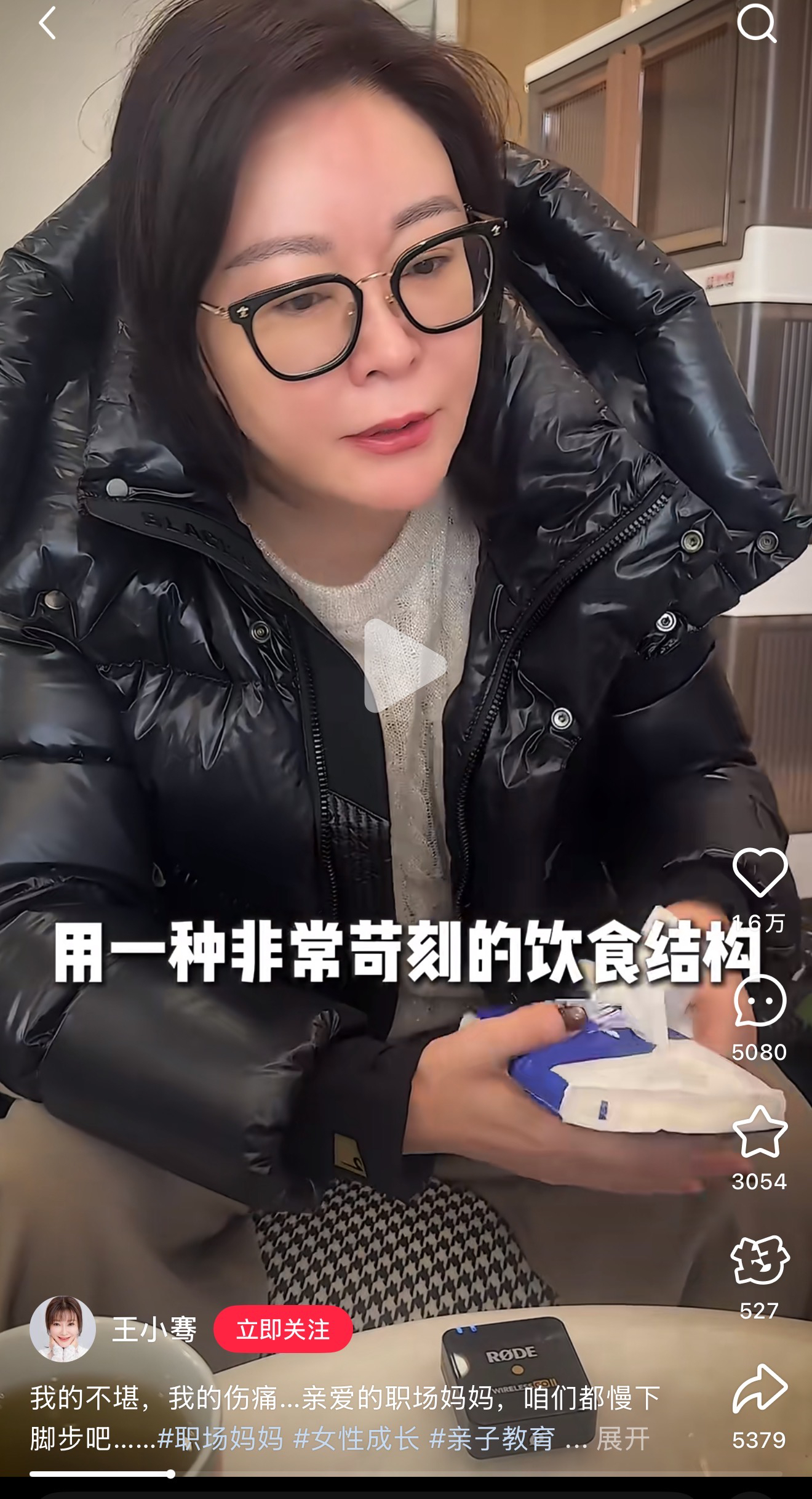视频中,王小骞直言“要崩溃了!”其11岁的女儿减肥只吃水煮菜,完全戒断油脂,基本上戒断碳水,蛋白质吃得也非常少,心率一度高达120,被判定为心肌损伤,王小骞边说边忍不住哭泣。