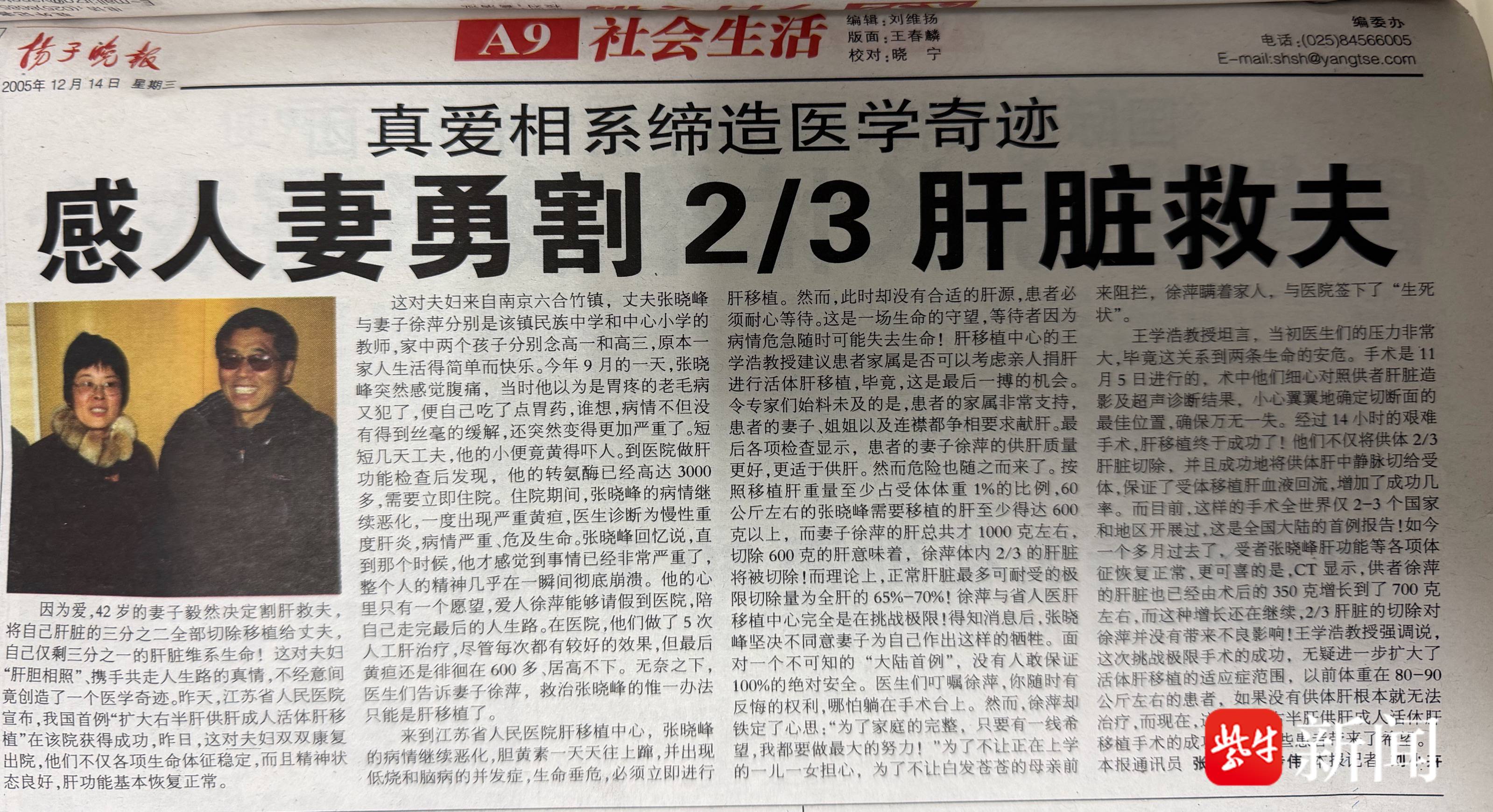 2005年12月14日,《扬子晚报》的一则报道则见证了中国首例急诊扩大的右叶供肝肝移植。这不仅是王学浩院士团队精湛医术的体现,更是我国器官移植技术发展史上的一个重要里程碑,为无数终末期肝病患者带来了新的希望。