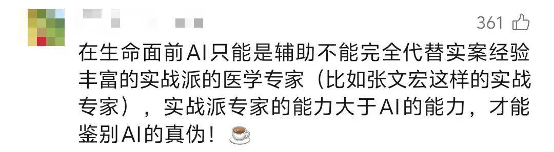 当然,张文宏也不是完全否定AI在医疗领域的作用。他觉得AI可以在一些辅助性的工作上发挥作用,比如帮助医生快速查找相关的医学文献、提供一些参考的治疗方案等。