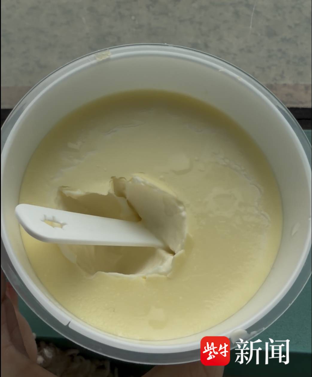 据了解,省人医这款奶皮子酸奶卖6元一盒,当天十点半正式开售。没过多久,几百盒酸奶全部卖光。记者排到“72号”,也入手了4盒尝尝鲜。酸奶包装轻巧但手感沉甸甸,盒里自带小勺。打开一看,表面结着一层厚厚的淡黄色奶皮,入口醇厚绵密,酸甜度适中,口感很扎实,但不会觉得腻。