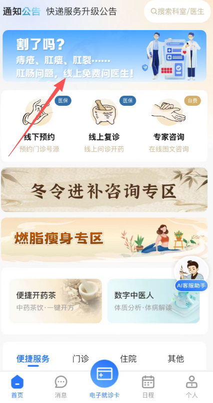 在南京市中医院互联网医院的首页,点击“割了吗”专区,即可选择一位肛肠科医生免费挂号;填写个人症状描述和病情材料,提交后等待医生接诊。医生提醒,描述越具体,医生判断越精准,包括疼痛性质、出血颜色、是否可回纳、持续时间等。