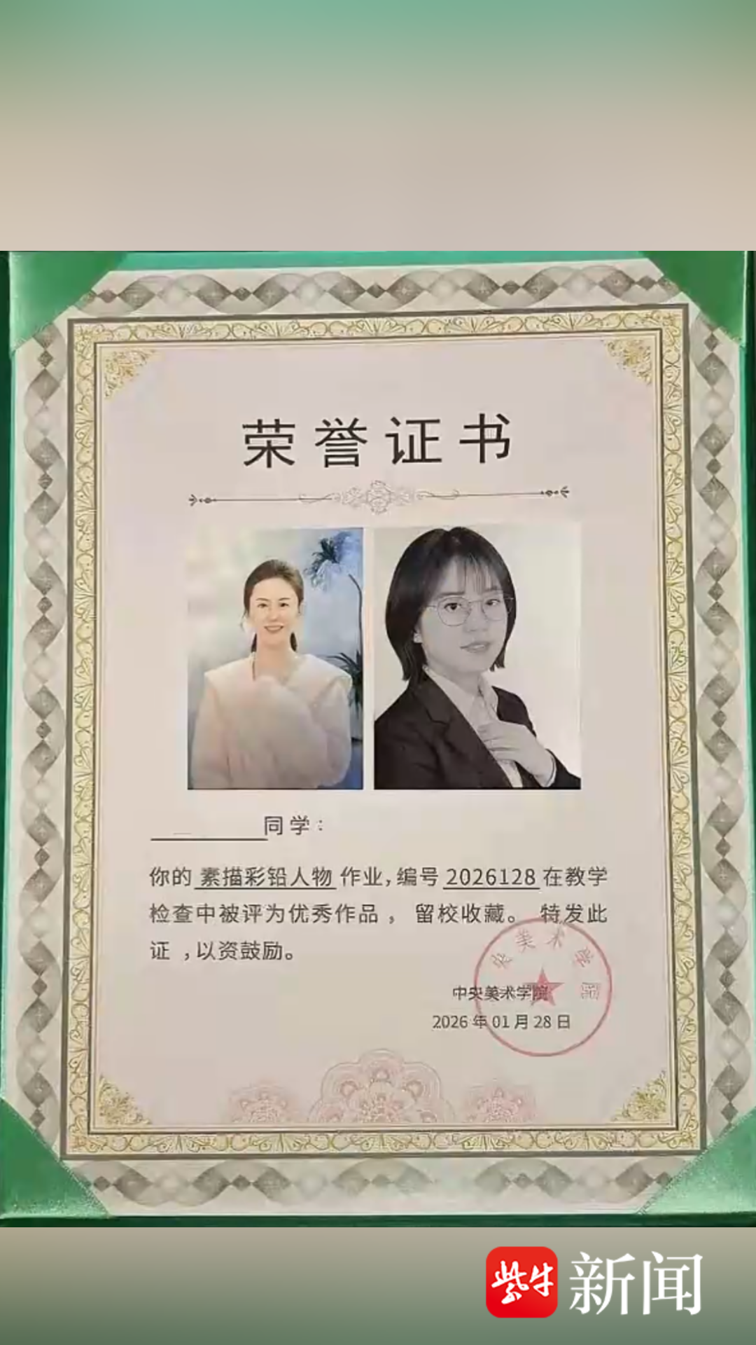 近日,好消息传来。小陈成功收到中央美术学院研修班的录取通知书,她创作的这两幅医生画像,在教学检查中被评为优秀作品,正式被学校留校收藏。“这两幅画能被学校收录,我特别想把这份荣誉分享给两位医生。”小陈动情地说,“是她们给了我第二次生命,也让我重新拿起画笔追逐梦想。”