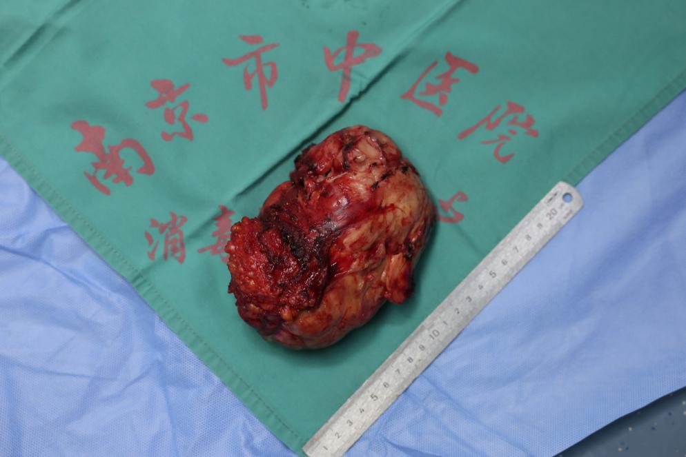 南京市中医院肛肠科团队主任中医师樊志敏教授解释,该肿瘤体积巨大,肿瘤压迫直肠导致患者出现大便难解等不适症状,且肿瘤所处位置极为特殊,深居于骶骨与直肠之间的极狭窄间隙,边界不清,与骶骨、直肠、前列腺紧密相连,周围密布支配排便、性功能的神经丛及关键血管,稍有不慎,便可能引发大出血、神经损伤、直肠损伤、肠瘘、前列腺损伤出血等严重后遗症,手术难度和风险堪称临床难题。“正因如此,李先生几经周折,最终就诊于我院。”樊志敏教授说。