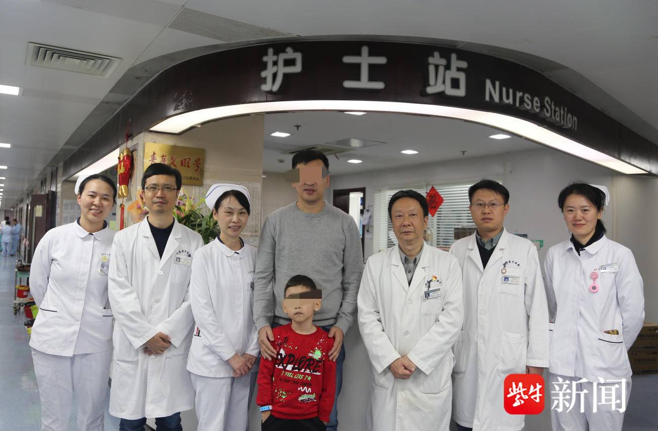 男童出院前和医护人员合影