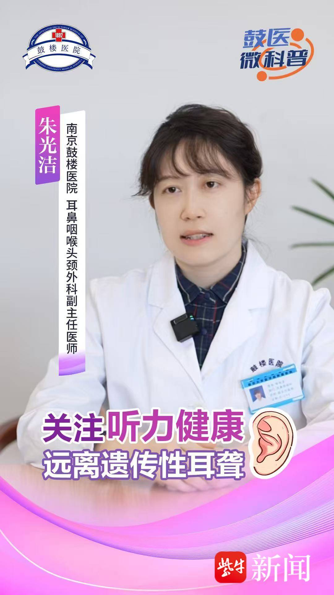遗传性耳聋是常见的出生缺陷之一,严重影响患者的生活质量。哪些因素导致了耳聋的遗传?是否有方法能预防?正值第27个“全国爱耳日”,让我们一起听听南京鼓楼医院耳鼻咽喉头颈外科副主任医师朱光洁的建议。