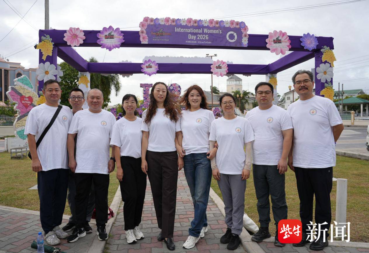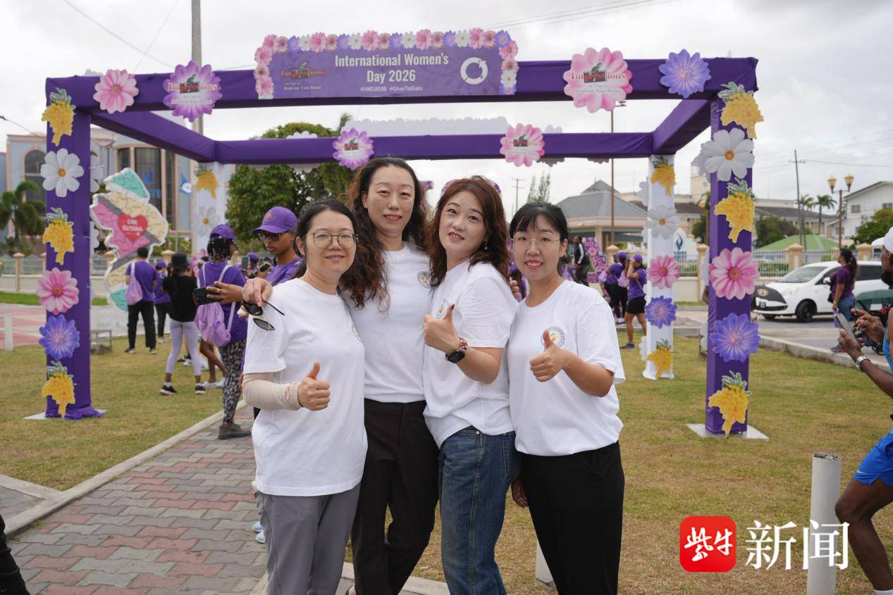 2026年3月8日,为庆祝国际妇女节,由圭亚那第一夫人阿雅·阿里发起的主题健步走活动在圭亚那首都乔治敦举行。第21批援圭亚那中国医疗队全体队员积极参与其中,乔治敦点的四位女性医疗专家——眼科刘楠楠、肾内科王涵、中医魏婕、妇产科李妍雨,与圭亚那各界女性代表并肩同行,共同传递健康生活理念,展现新时代中国女性医者的风采与担当。