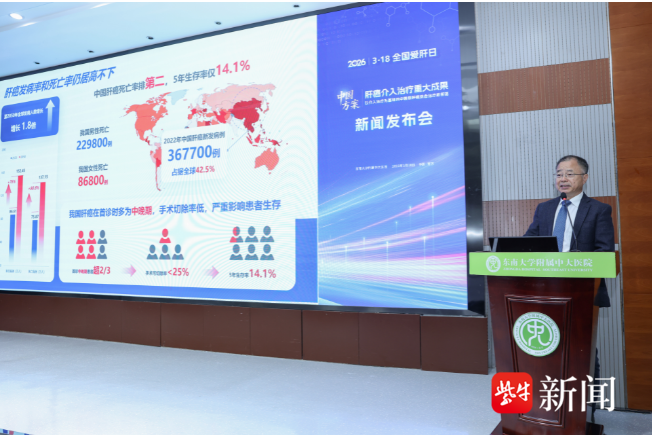 3月18日是第26个全国爱肝日。当日,中国肝癌介入治疗重大成果新闻发布会在东南大学附属中大医院举行。会上,正式发布了“中国方案——以介入治疗为基础的中晚期肝癌综合治疗新策略”等多项引领国际的中国肝癌介入综合治疗重大成果。来自国内10余家著名医院的肝癌诊疗专家共同出席和见证近年来我国介入医学界在肝癌临床治疗领域不断创新的系列重大成果发布。