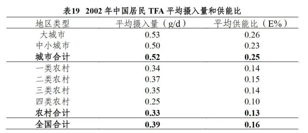 数据来自:中国居民反式脂肪酸膳食摄入水平及其风险评估