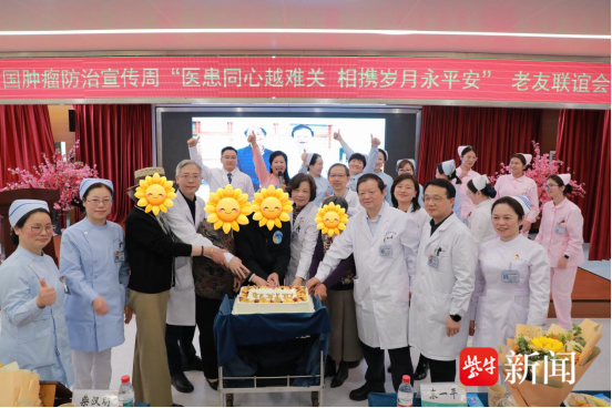 2026年4月21日,第32届全国肿瘤防治宣传周期间,一场以“医患同心越难关,相携岁月永平安”为主题的老友联谊会在江苏省肿瘤医院(南京医科大学附属肿瘤医院)温暖举行。20余名癌症术后长期生存患者从四面八方回到医院,与当年救治他们的医护人员重逢,共同见证生命的奇迹。他们中,最长已健康生存33年,年龄最大的已95岁高龄。