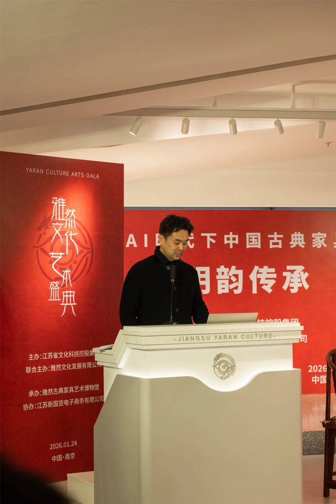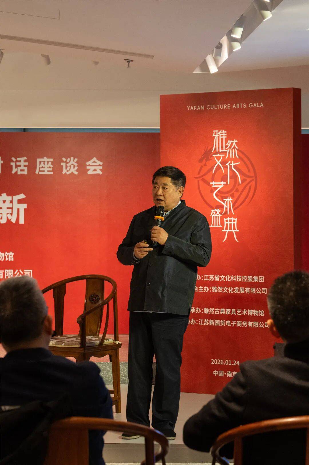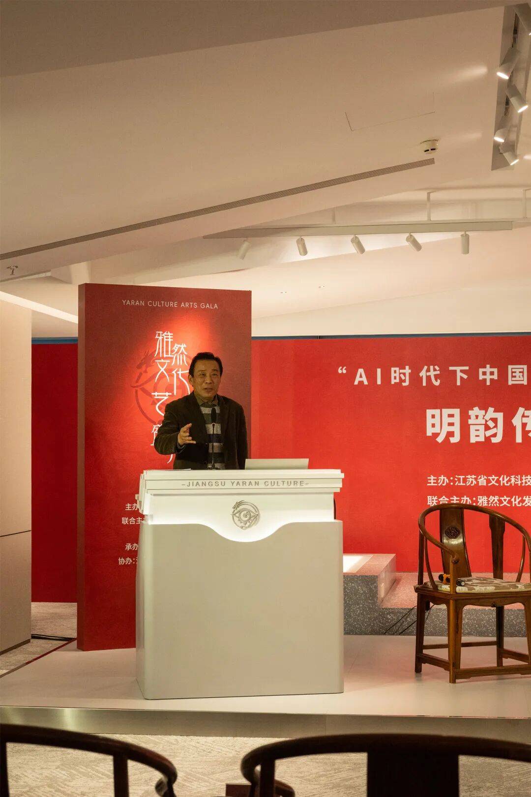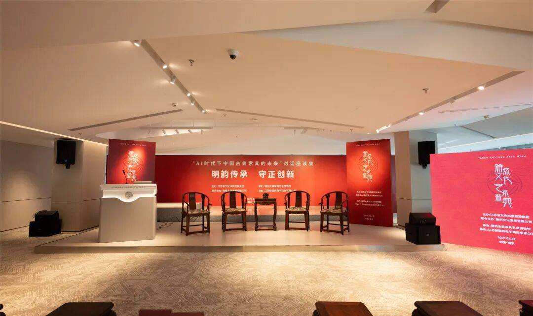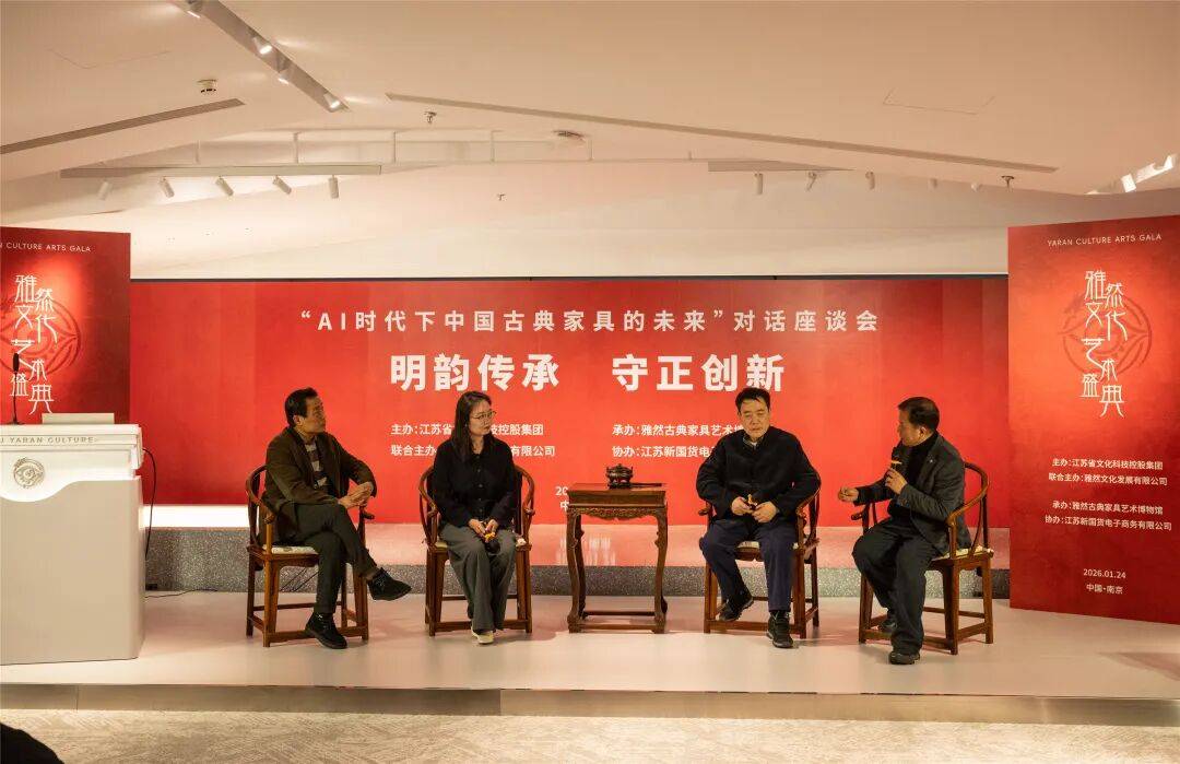 本次活动由江苏省文化科技控股集团、江苏雅然文化发展有限公司联合主办,雅然古典家具艺术博物馆承办,江苏新国货电商公司协办,汇聚文化、艺术、学术、产业界顶尖力量,以中国古典家具为文化切口,深度探讨AI时代优秀传统文化的守正创新之道。