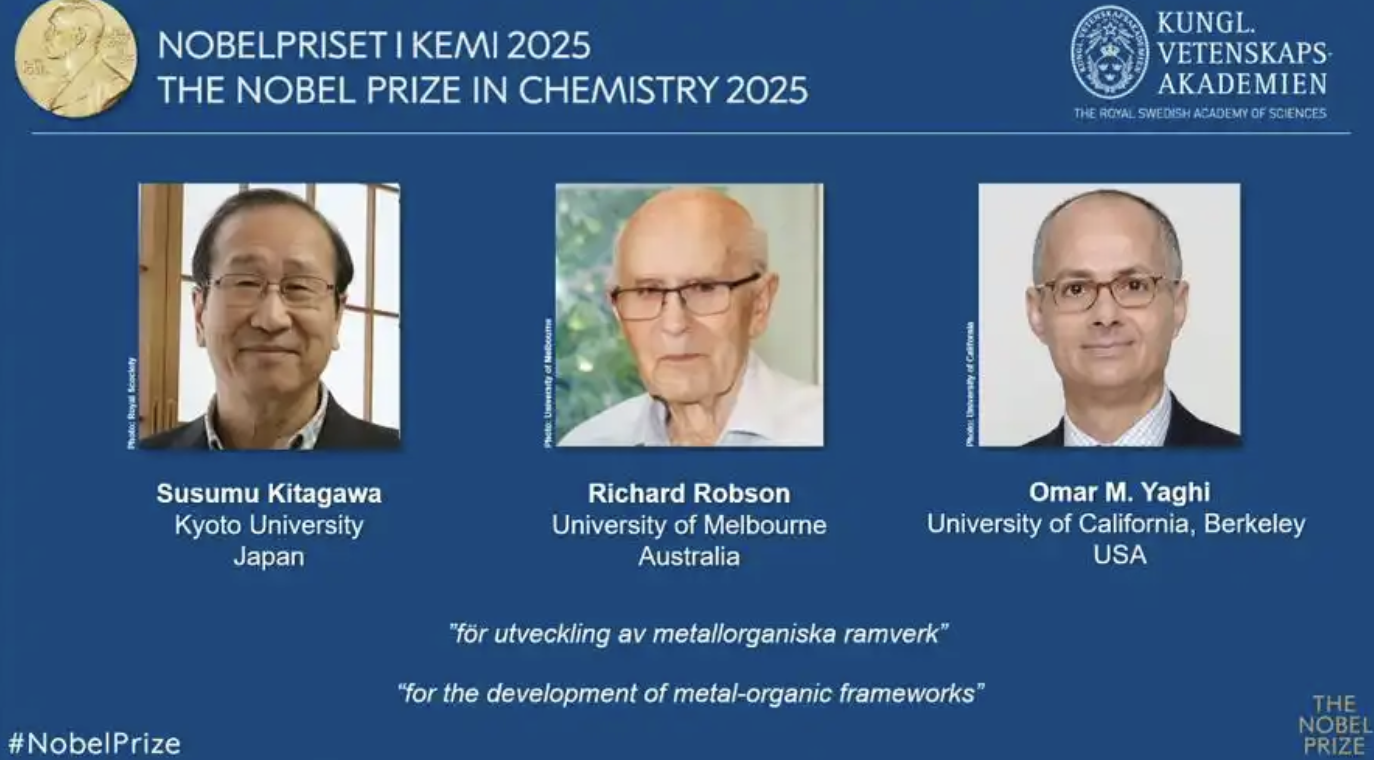 10月8日,2025年度诺贝尔化学奖揭晓。今年化学奖授予北川进、理查德·罗布森和奥马尔·M·亚吉,获奖理由是“用于开发金属有机框架材料”。金属有机框架材料是什么?它对我们的世界带来了怎样的改变?记者邀请南京大学化学化工学院教授丁梦宁进行解读。