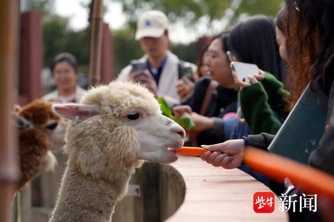 羊驼披着厚实的绒毛,在渐凉的天气里显得格外温顺安然,成为最受欢迎的“治愈使者”。