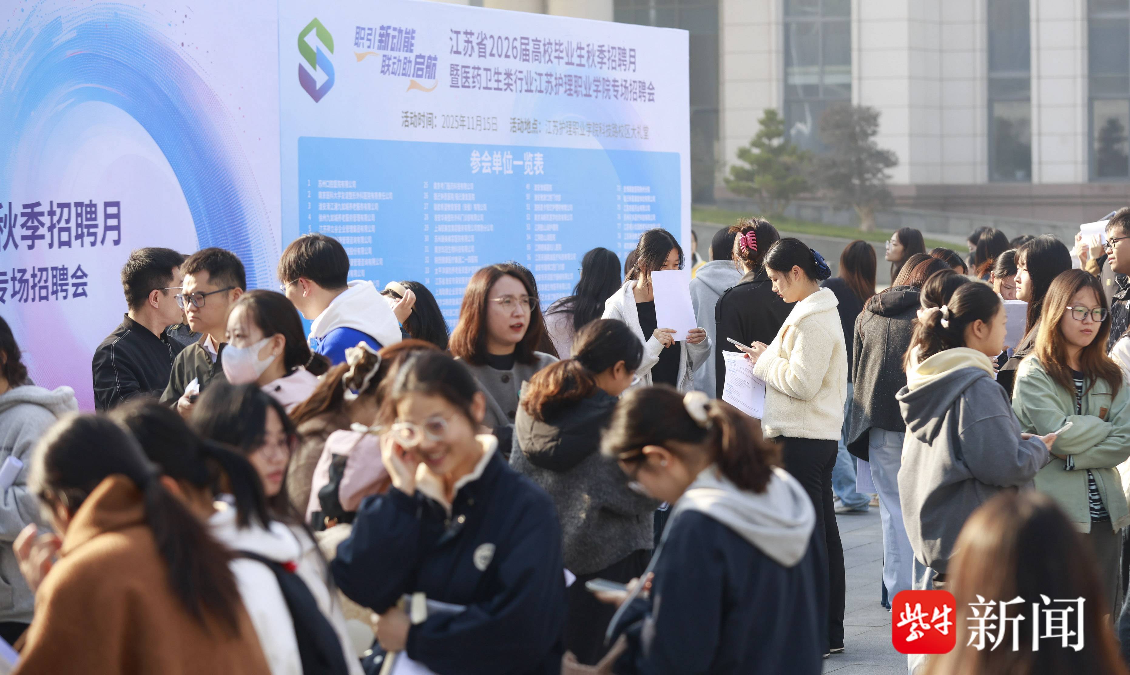 11月15日,“职引新动能 联动助启航”江苏省2026届高校毕业生秋季招聘月暨医药卫生行业专场招聘会在江苏护理职业学院举行。110家企业带来超过2000个用人需求,涵盖护理、养生康复、医疗科技、健康管理等多个热门行业。扬子晚报/紫牛新闻记者在采访中发现,这届毕业生不仅求职视野开阔,还在抖音“起号”玩出了新赛道。