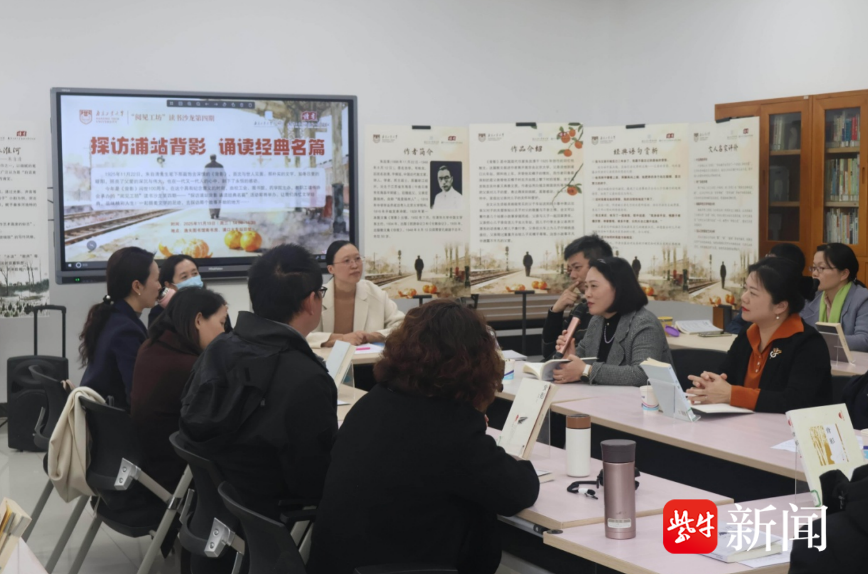 “在晶莹的泪光中,又看见那肥胖的、青布棉袍黑布马褂的背影。唉!我不知何时再能与他相见!”11月19日,南京工业大学逸夫图书馆南书房内,央视主持人康辉缓缓流淌的《背影》朗诵录音,瞬间将现场带入百年前的月台场景。为纪念朱自清先生名篇《背影》发表一百周年,南京工业大学工会、图书馆、药学院与校教职工读书协会联合发起“探访浦站背影,诵读经典名篇”沉浸式文学行走。四十余位教职工代表从南书房的书香雅集,走向《背影》故事的原点——南京浦口火车站,在诵读与行走中,完成一场跨越时空的文学对话,让个体记忆与民族共同文化记忆实现深刻共鸣。
